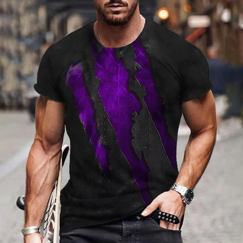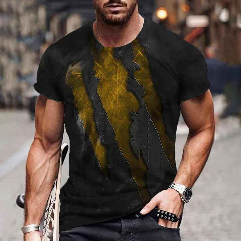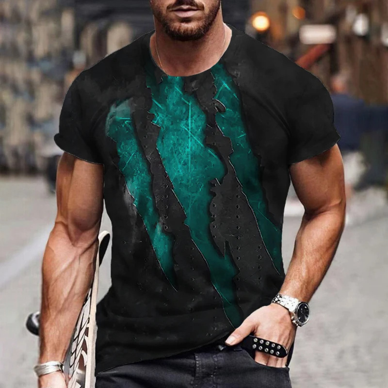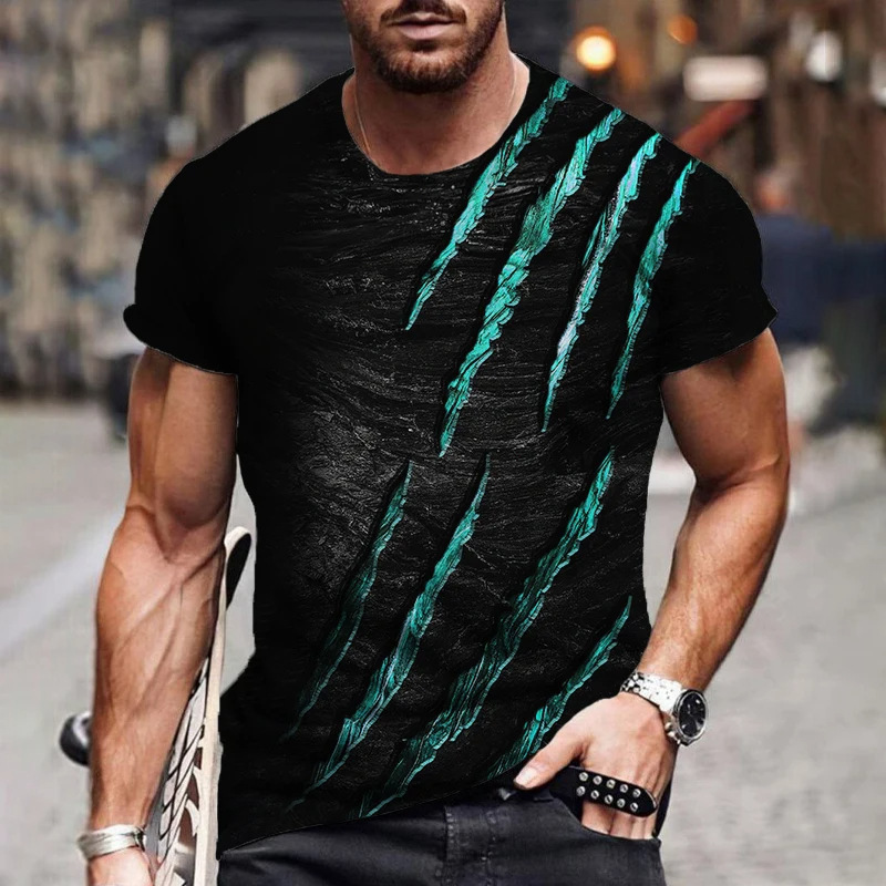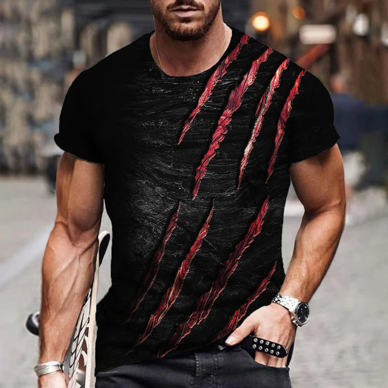 아마존 국경 패션 유럽 크기 발톱 마크 3d 인쇄 최고 남성 캐주얼 느슨한 짧은 소매 유행 라운드 넥 티셔츠스토어 가기