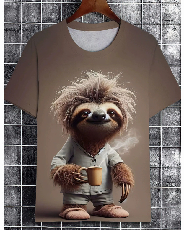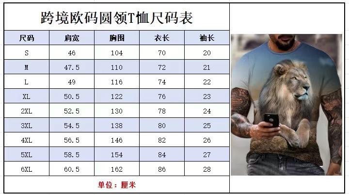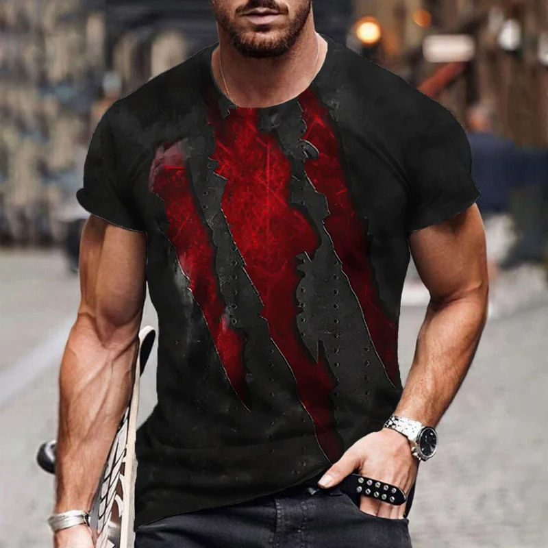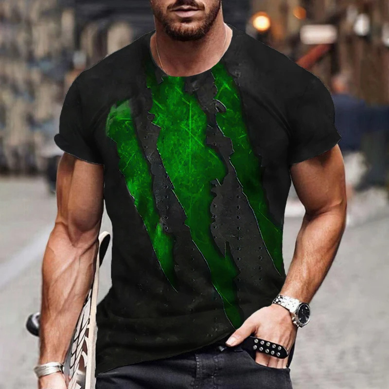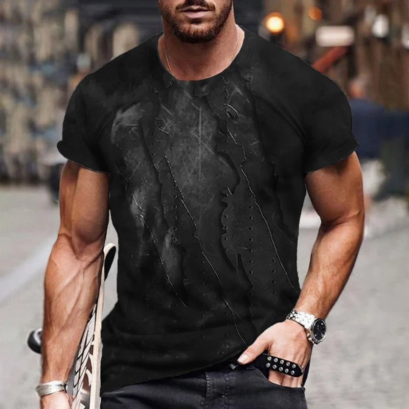 아마존 국경 패션 유럽 크기 발톱 마크 3d 인쇄 최고 남성 캐주얼 느슨한 짧은 소매 유행 라운드 넥 티셔츠