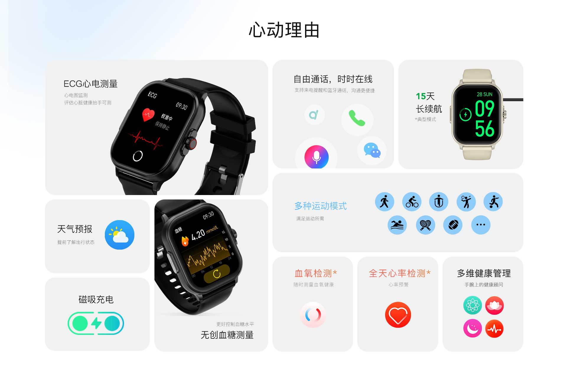 새로운 E02 블루투스 통화 스마트 시계 ECG ECG 혈당 심박수 혈압 건강 모니터링 멀티 스포츠 시계