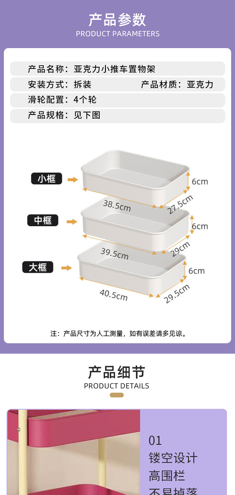 • 보라색 바구니 검은 막대-3 층 (업그레이드 카트)