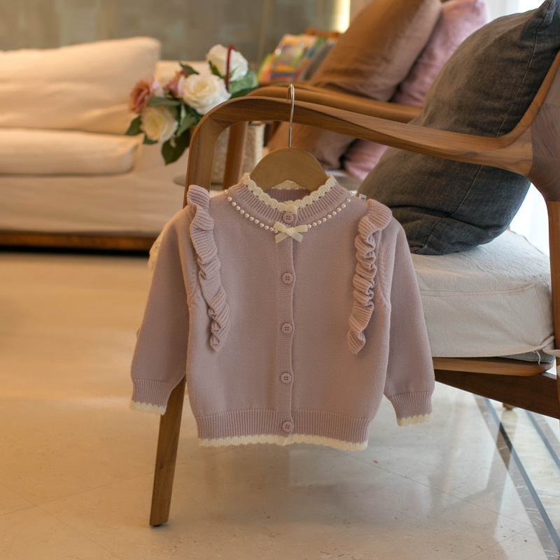 2024 가을 소녀 새로운 절묘한 진주 칼라 스웨터 카디건 J826 의 세대