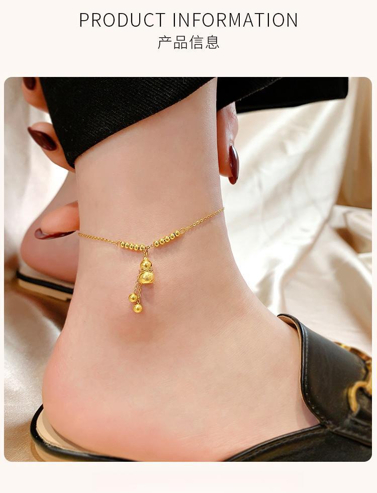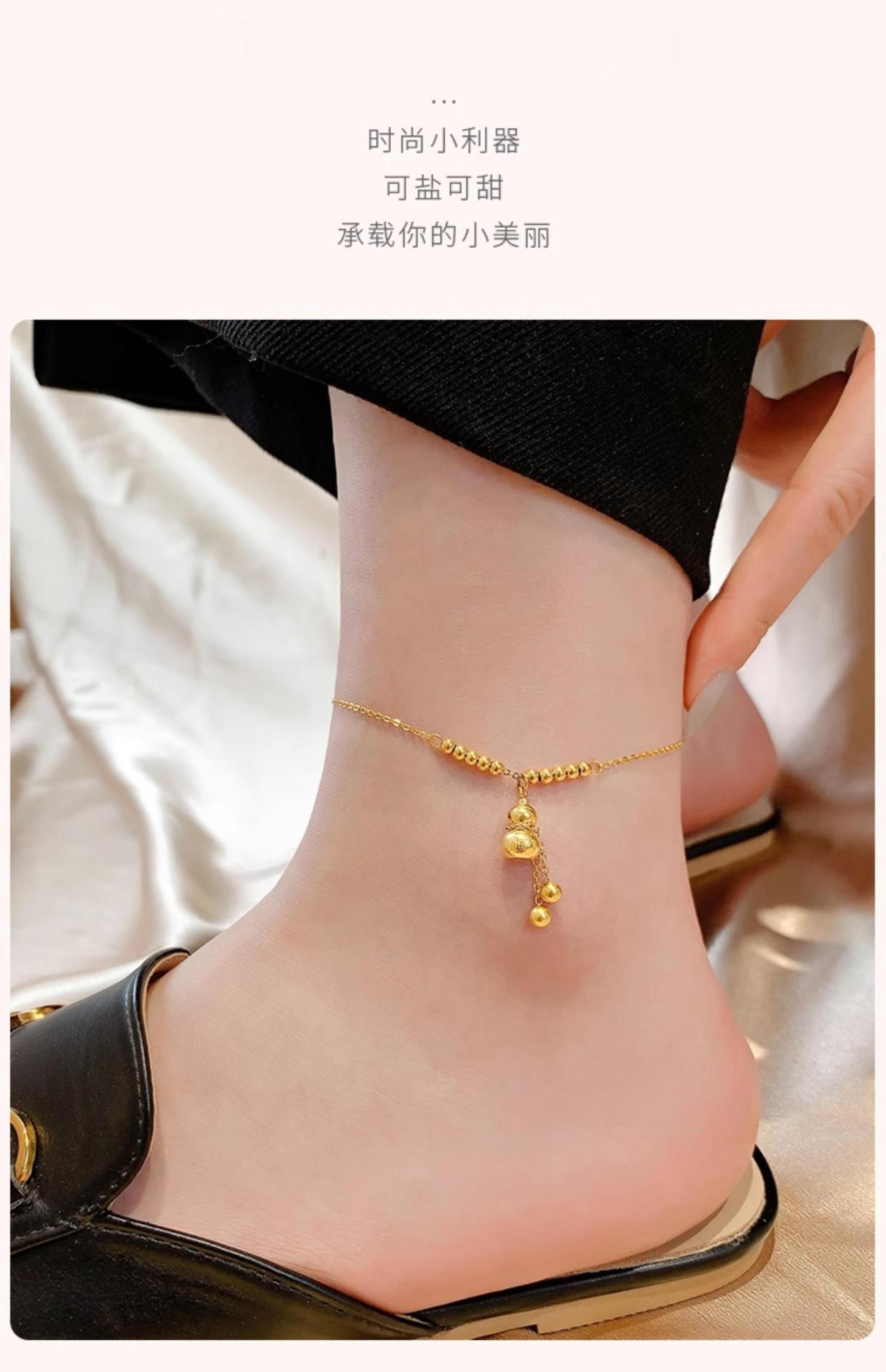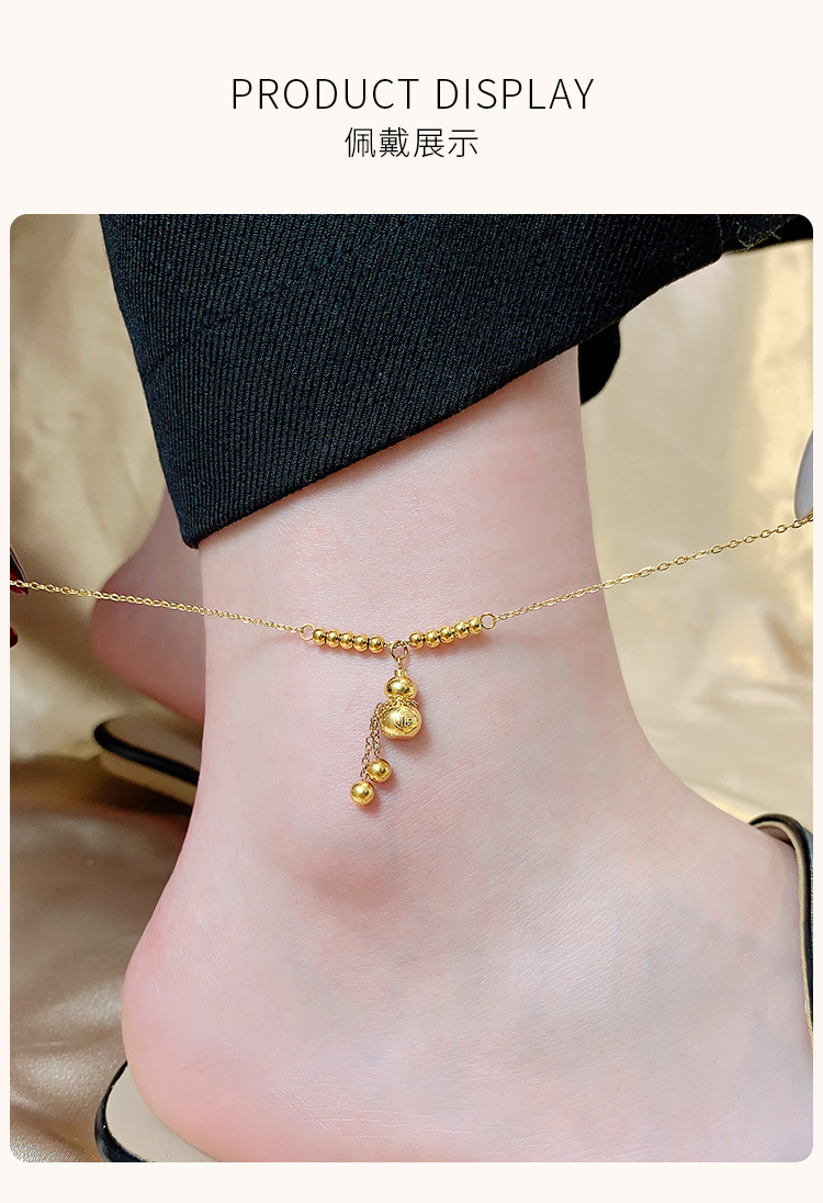 Gourd Tassel Anklet Women's 2024 새로운 유행 황금 소녀의 발 체인 고급 섹시한 티타늄 스틸 여름에 떨어지지 않음스토어 가기