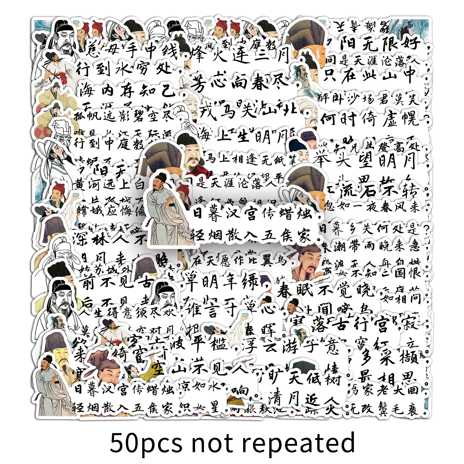 50 시인 스티커 고대시 중국 스타일 만화 낙서 방수 장식 손 책 보온병 스티커 도매스토어 가기