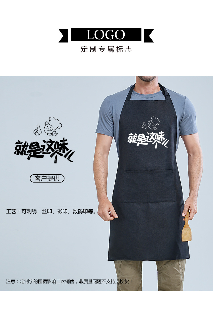 跨境挂脖围裙定制logo韩版烘培厨房餐厅奶茶咖啡店工作服厨房围裙