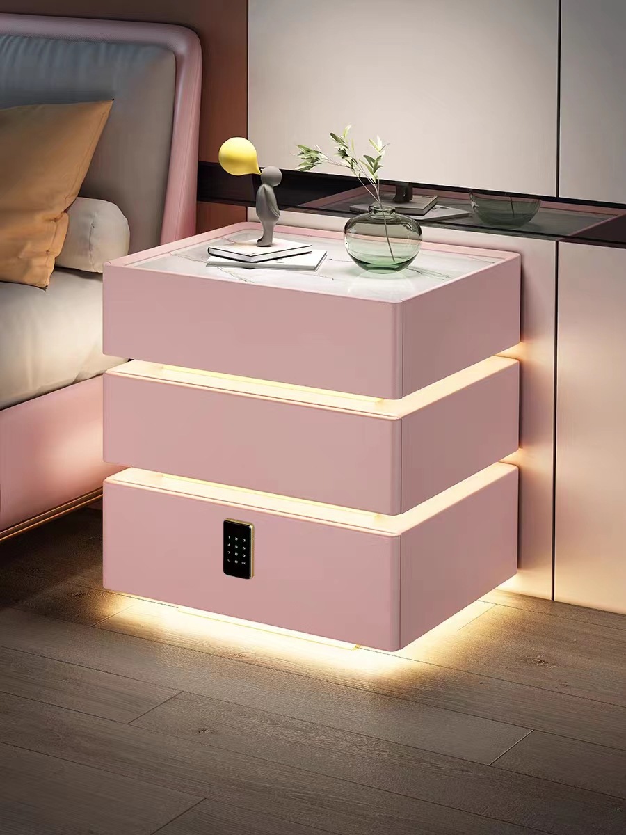 • 핑크 3 색 램프 무선 충전 USB 블루투스 오디오 지문 암호 잠금
