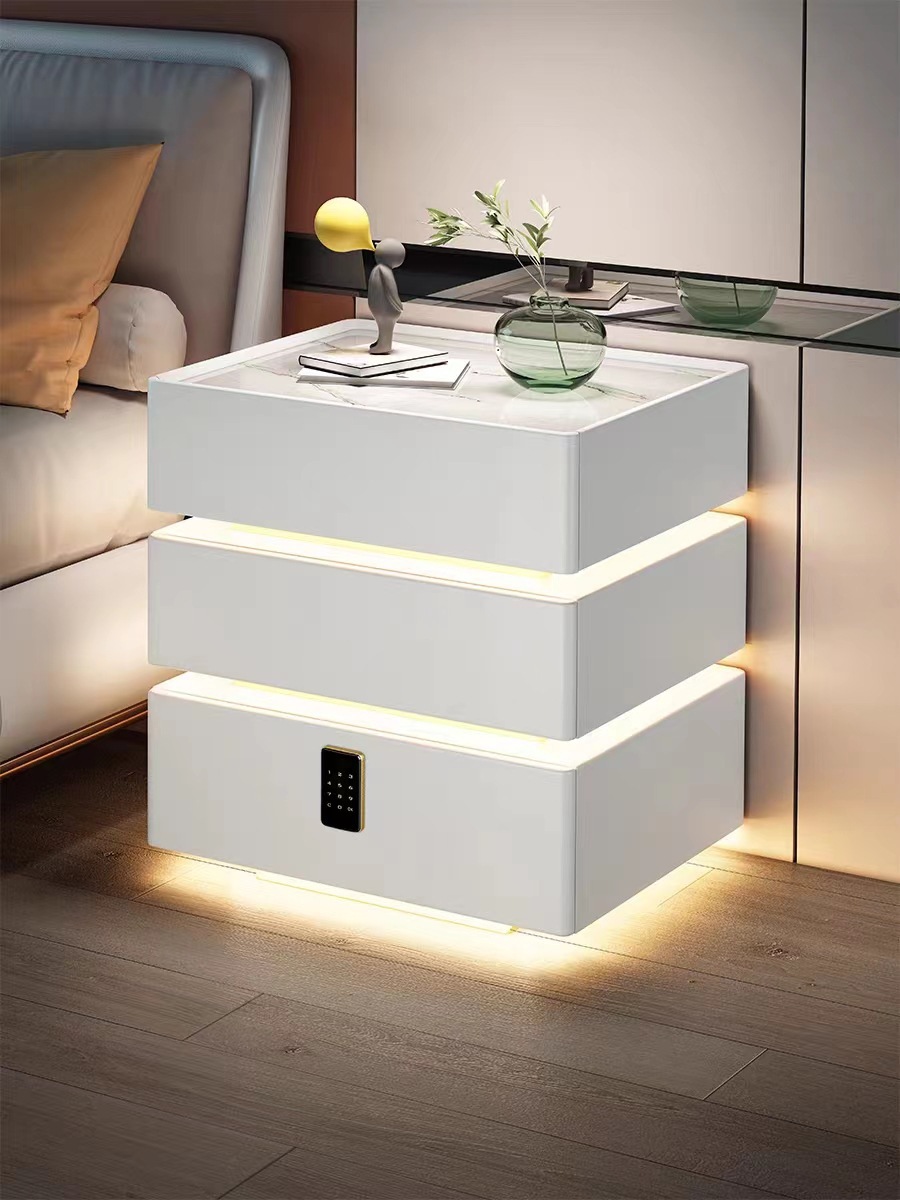 서스펜션 스마트 침대 옆 테이블 크림 스타일 간단한 현대 3 펌프 다기능 무선 충전 조합 잠금 단단한 나무 침대 옆 테이블스토어 가기