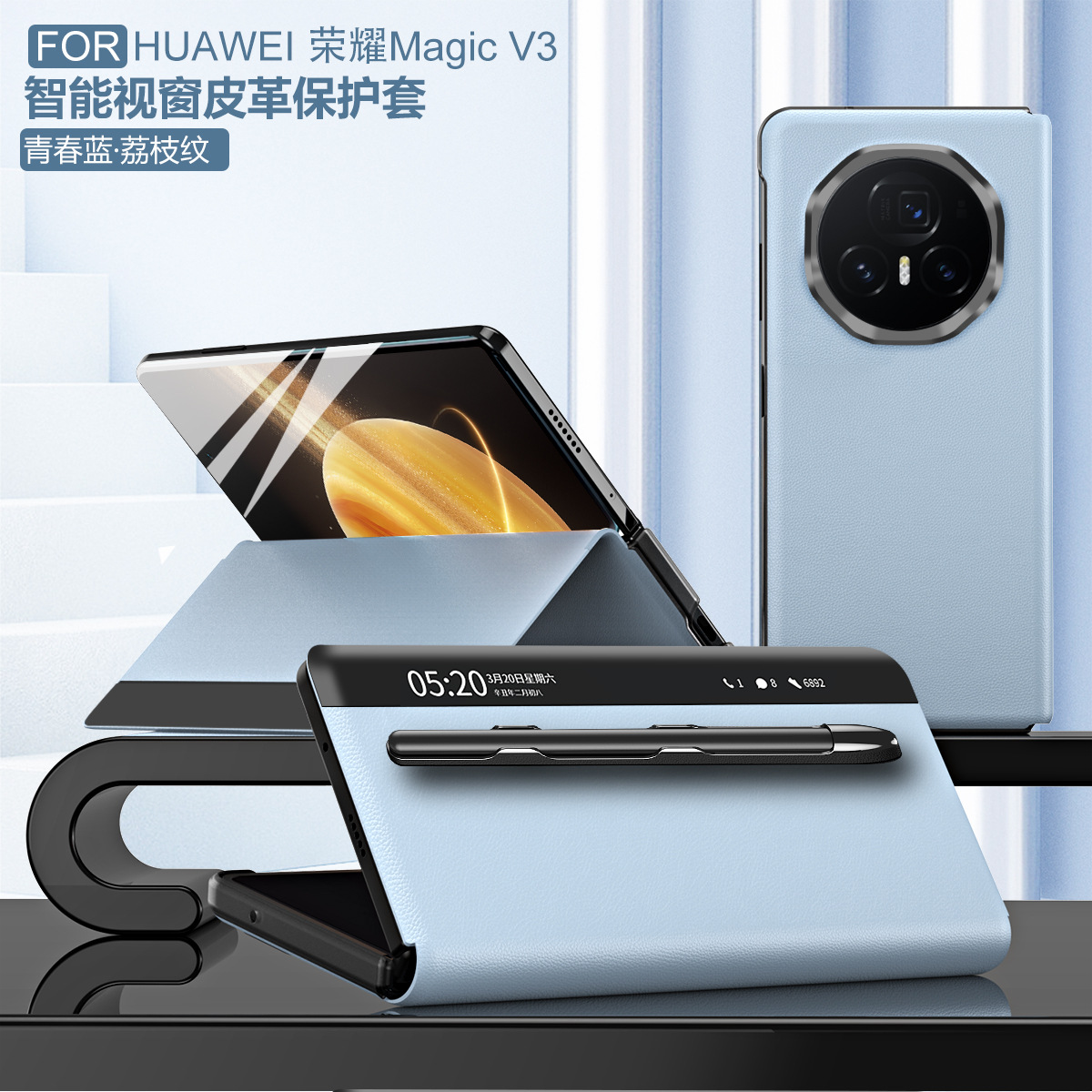 명예 MagicV3 전화 케이스 공식 스마트 윈도우 가죽 케이스 magicv3 초박형 드롭 방지 보호 케이스