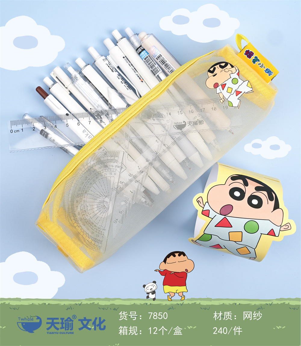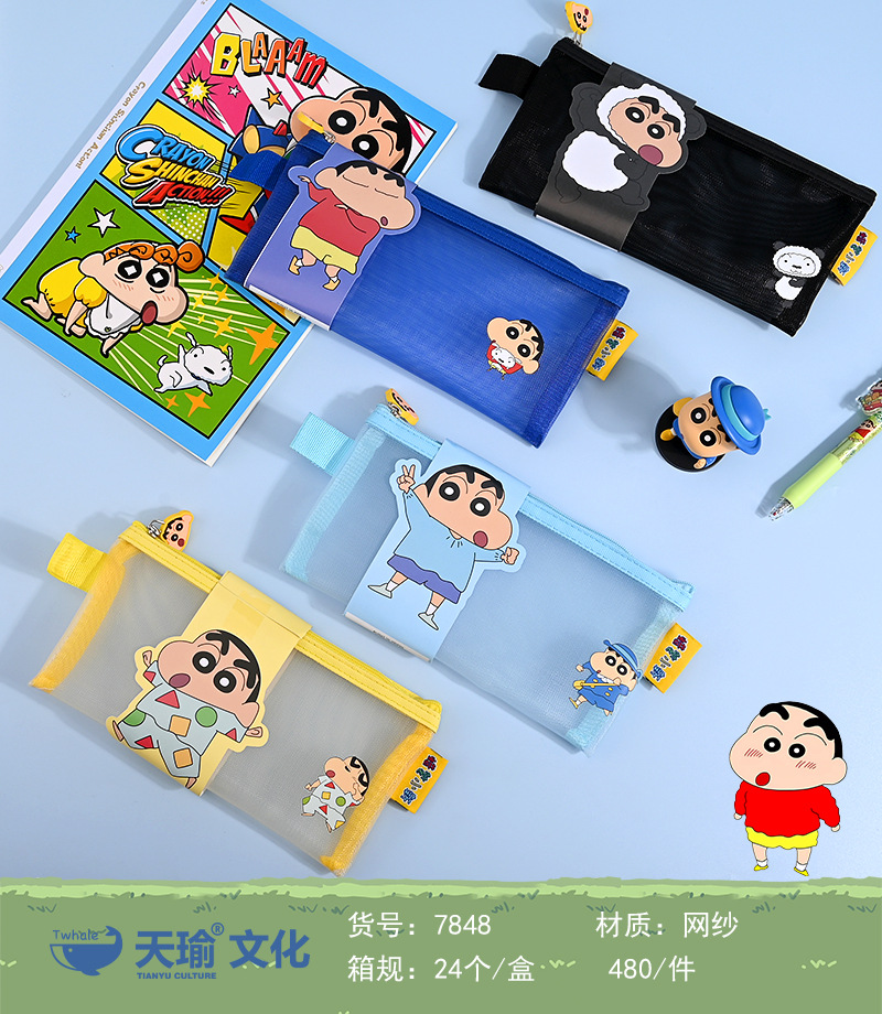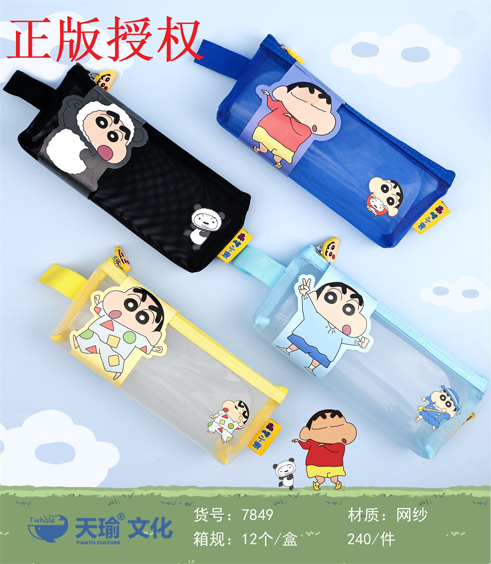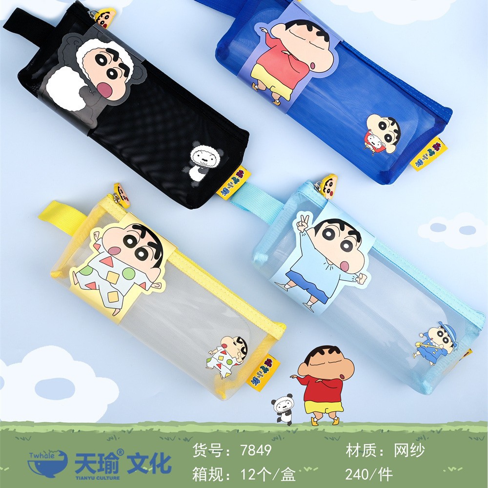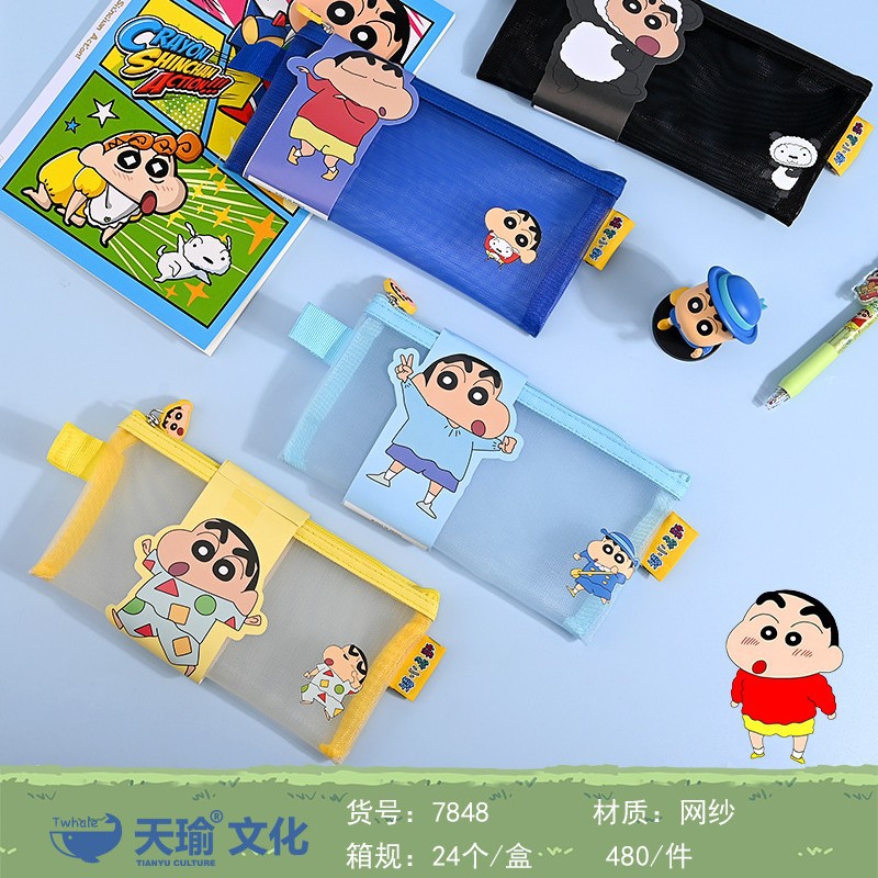 Tianyu 메쉬 연필 가방 정품 크레용 신짱 스타일 연필 상자 학교 시작 중학생 보관 가방 편지지 가방 도매
