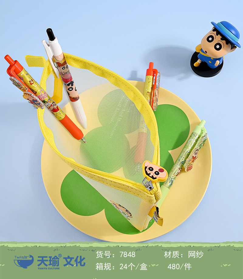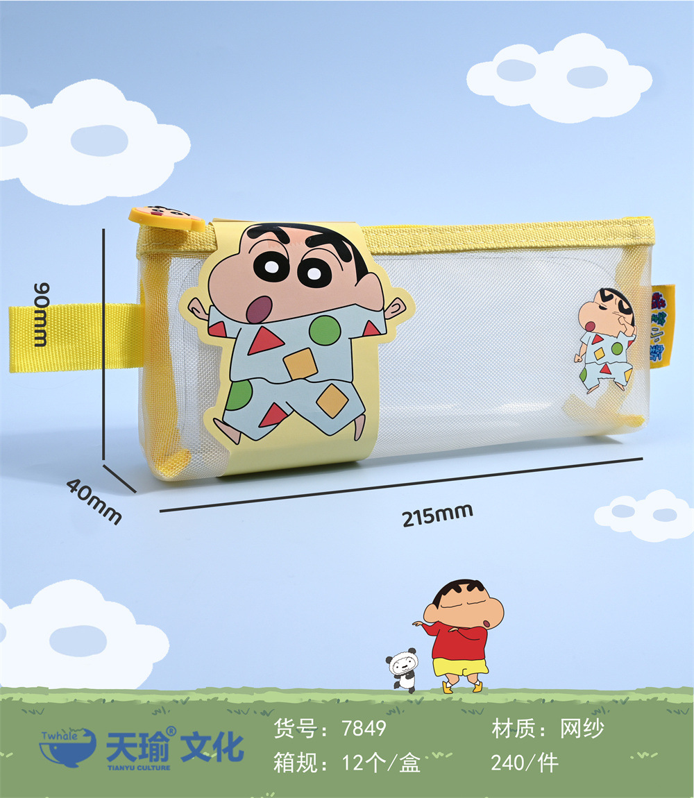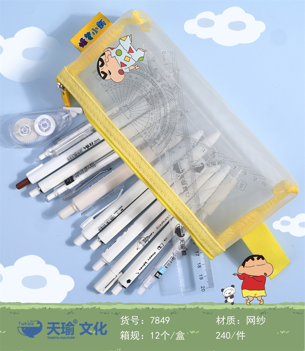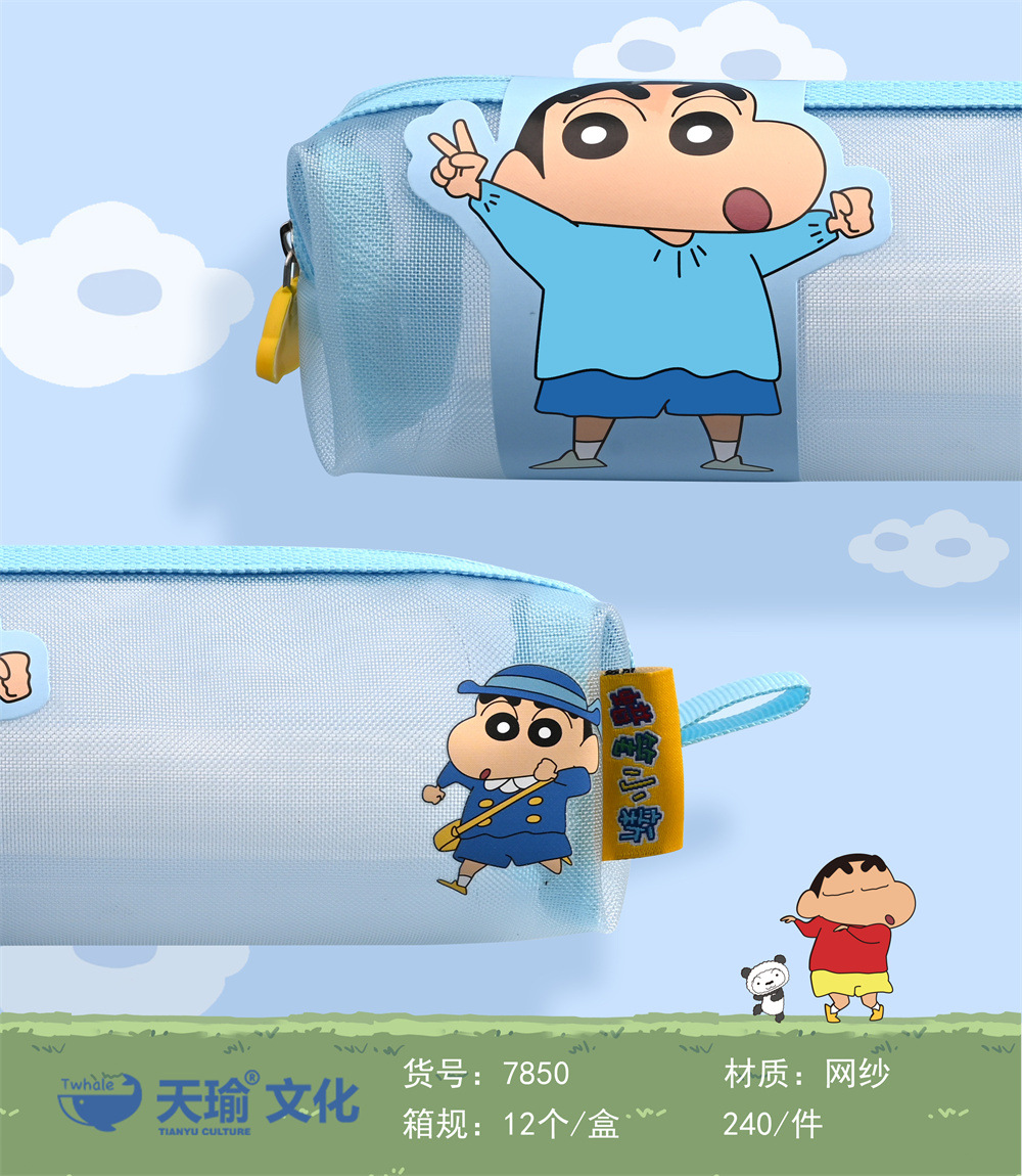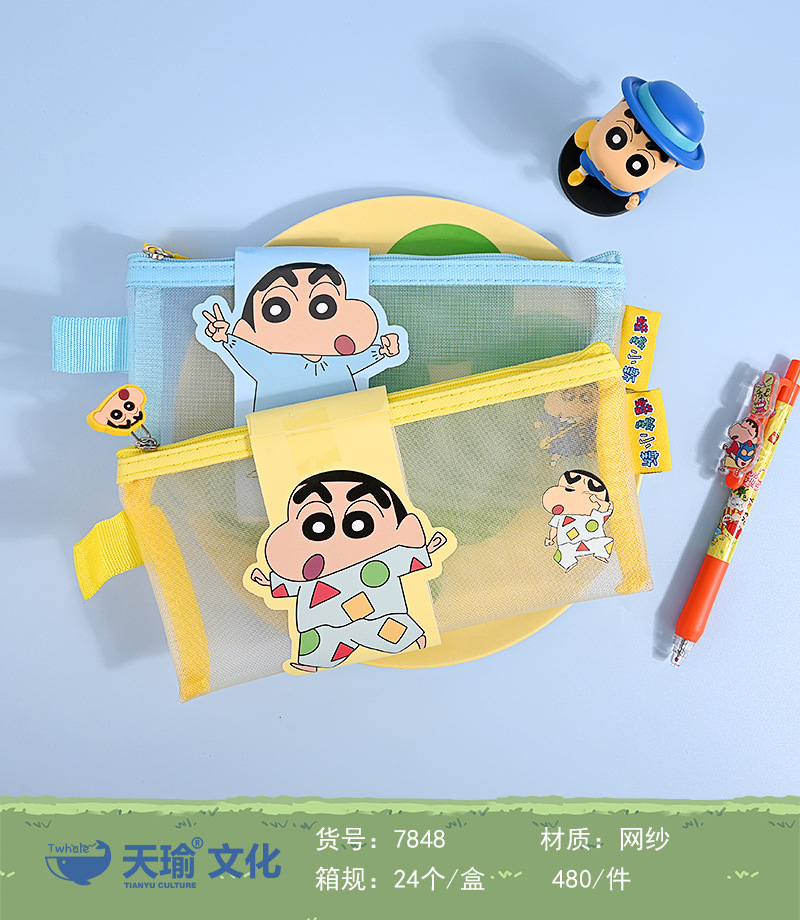 Tianyu 메쉬 연필 가방 정품 크레용 신짱 스타일 연필 상자 학교 시작 중학생 보관 가방 편지지 가방 도매