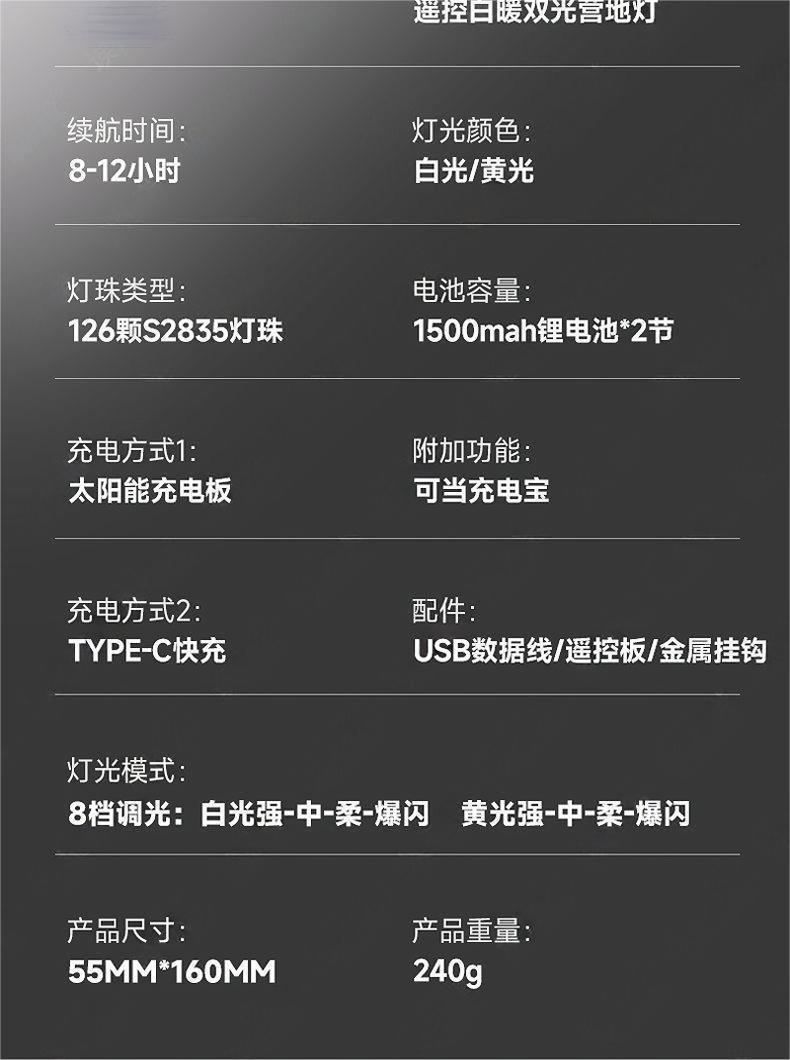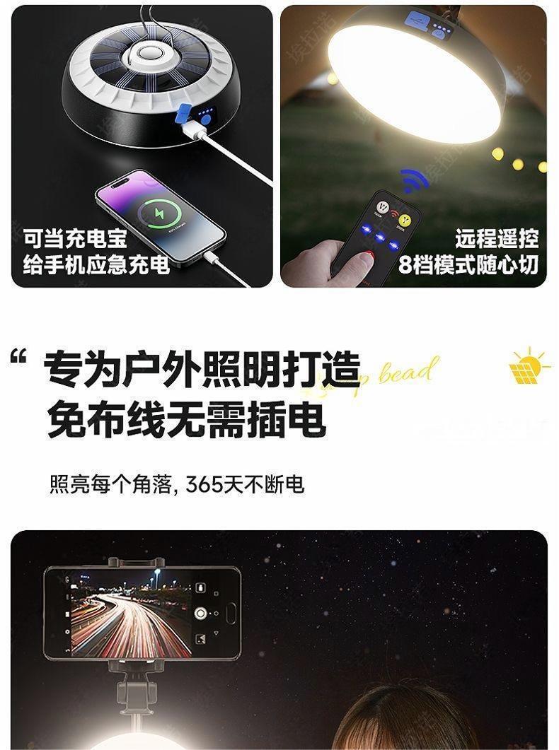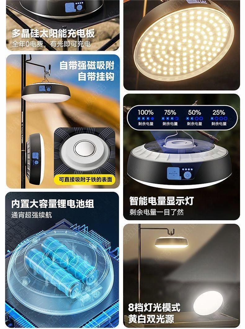 화이트 라이트 태양 에너지 텐트 스톨 캠핑 조명 슈퍼 밝은 따뜻한 빛 정지 광원 비상 충전 홈 야시장스토어 가기