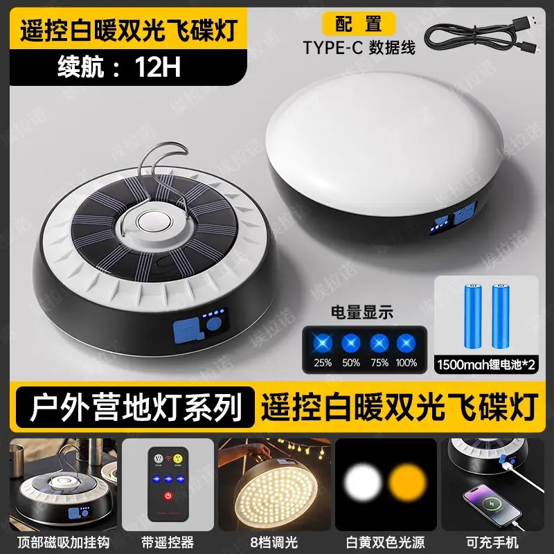 화이트 라이트 태양 에너지 텐트 스톨 캠핑 조명 슈퍼 밝은 따뜻한 빛 정지 광원 비상 충전 홈 야시장