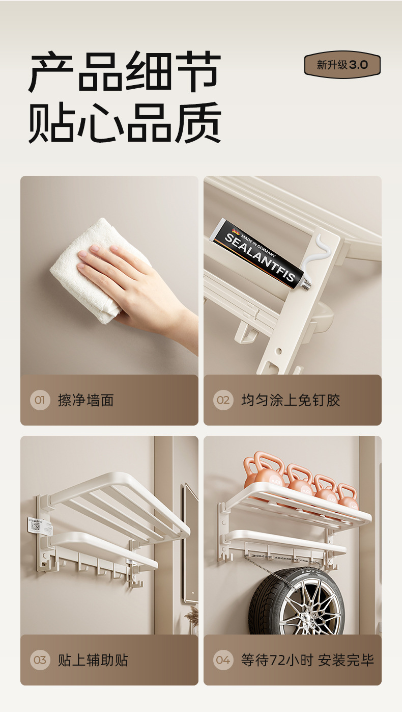 크림 스타일 수건 랙 화장실 비 천공 목욕 타월 보관 랙 욕실 화장실 벽 장착 공간 알루미늄 보관 용 막대스토어 가기