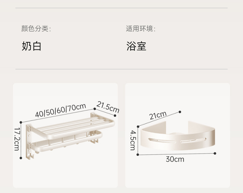 • 후크 크림 바람 50cm 수건 랙