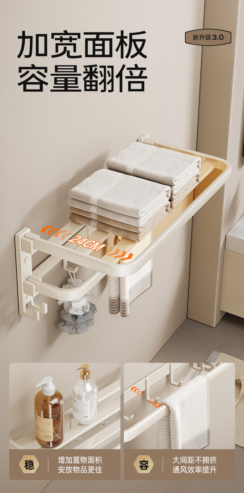 • 크림 바람 타월 랙