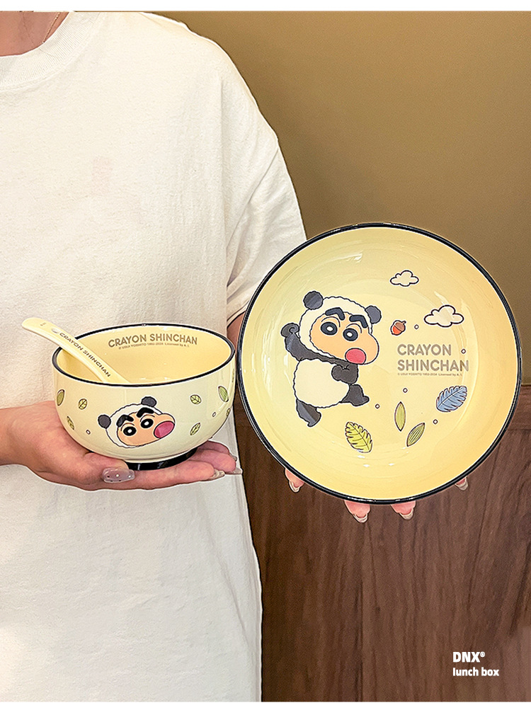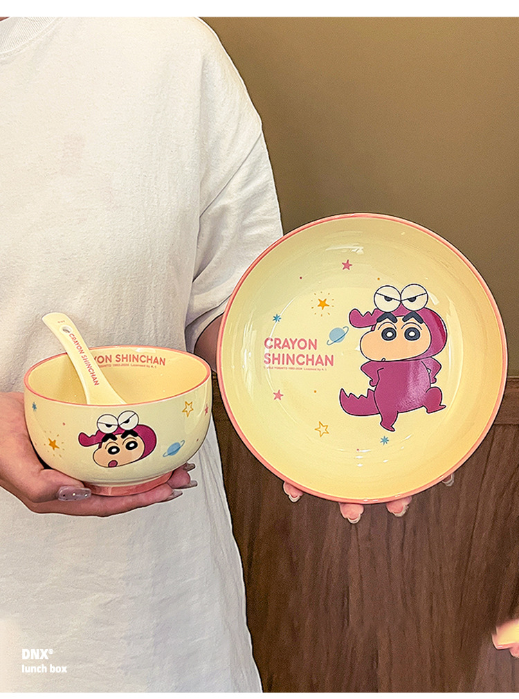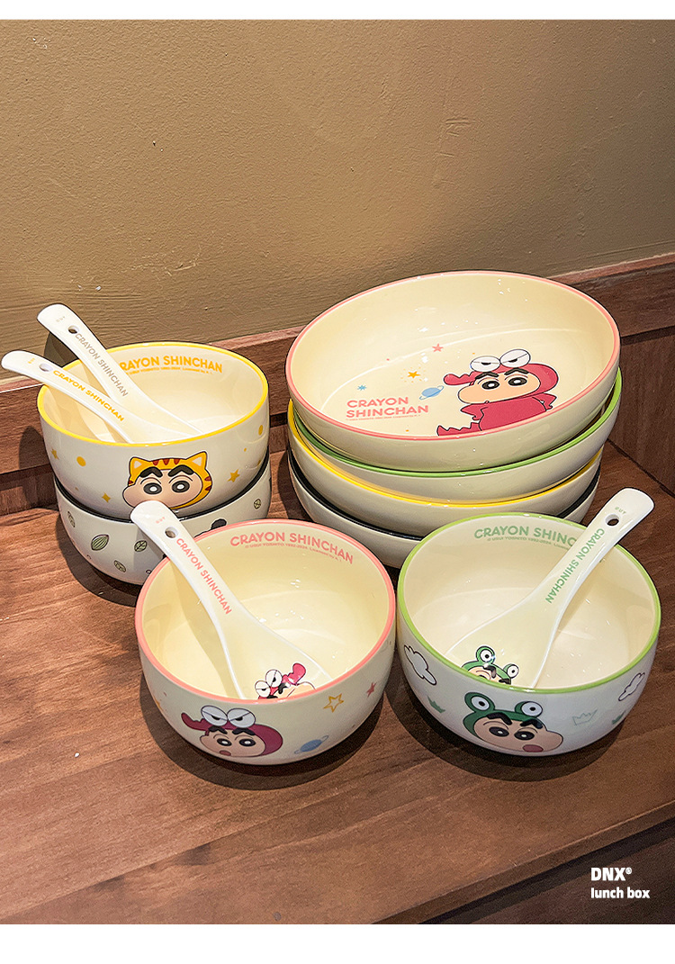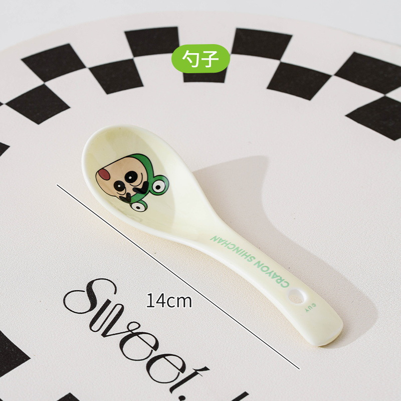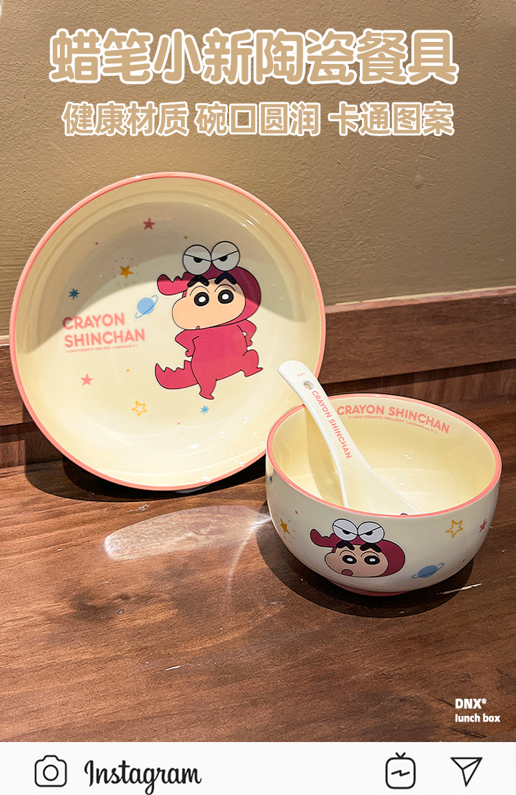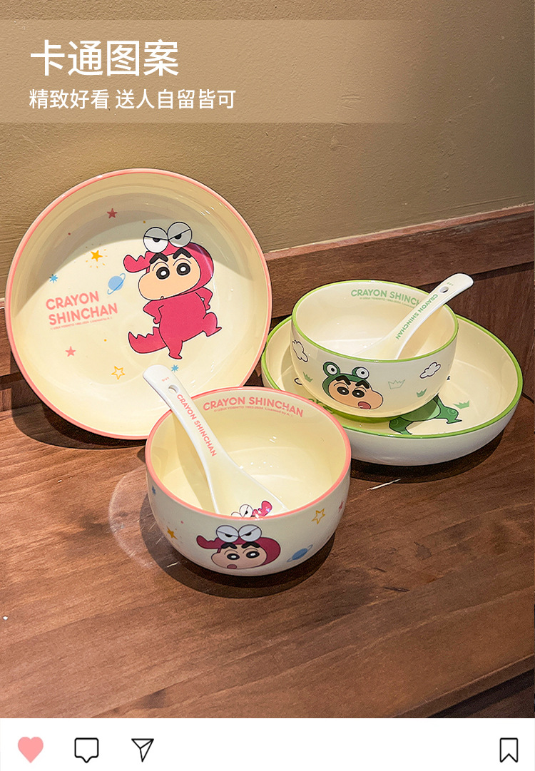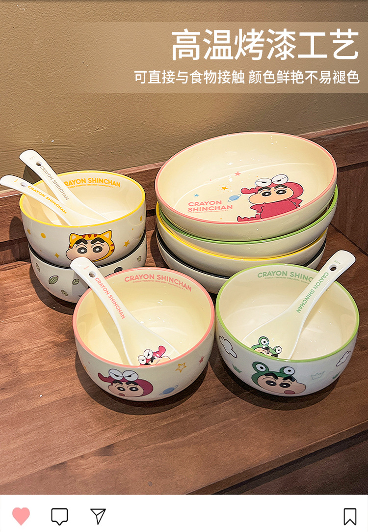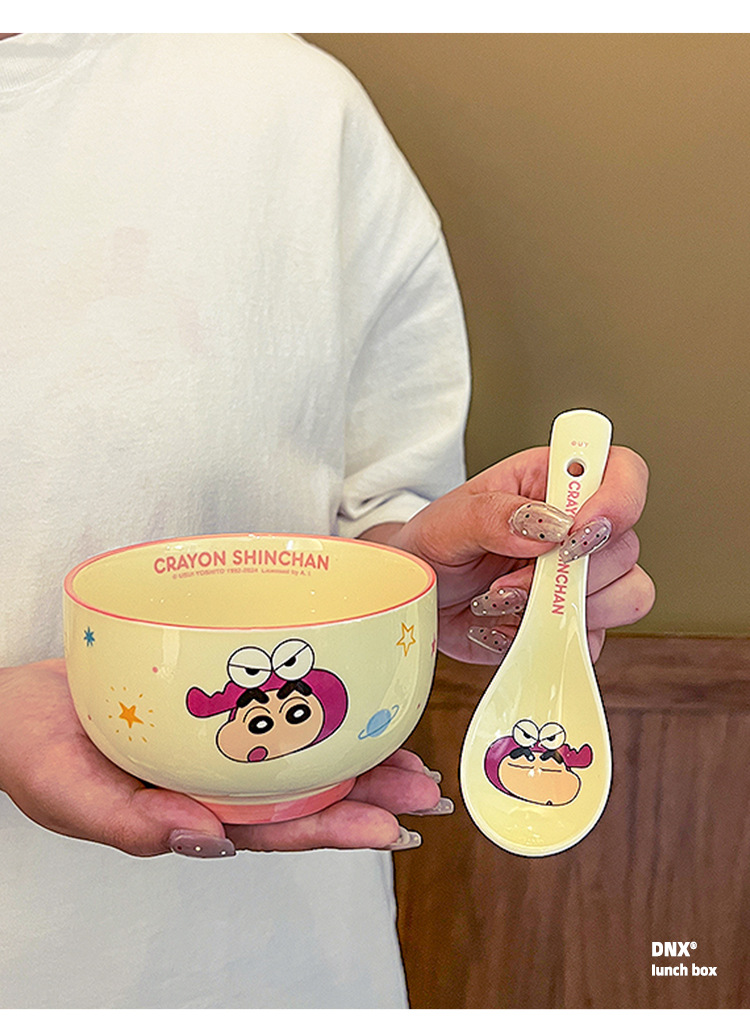 크레용 신 새로운 도착 세라믹 식기 쌀 그릇 귀여운 접시 가정용 1 인 그릇 숟가락 손 선물스토어 가기