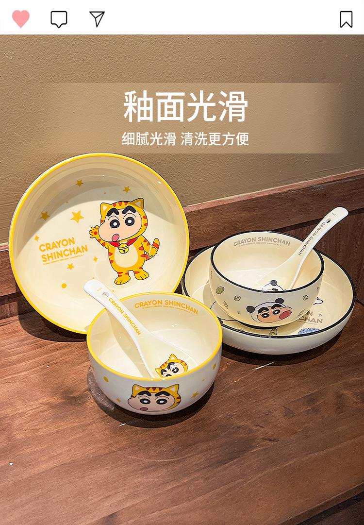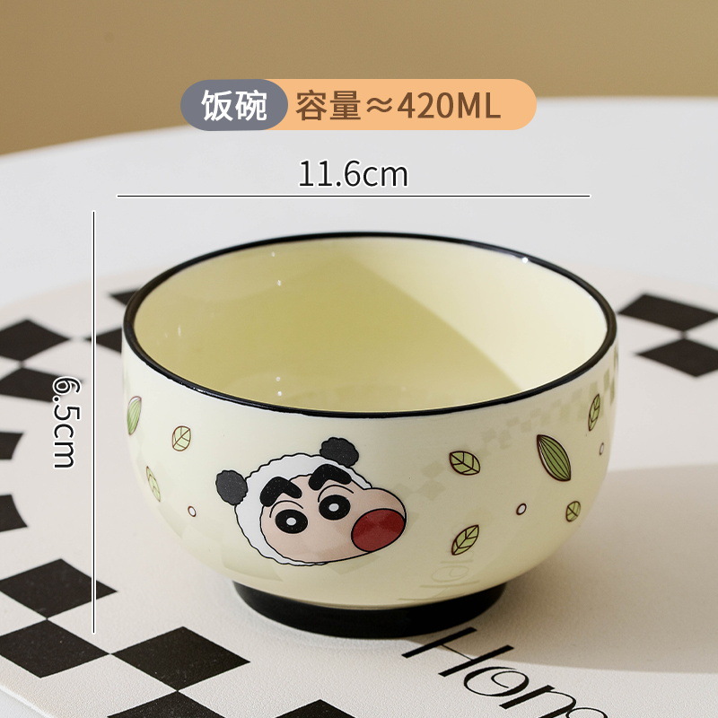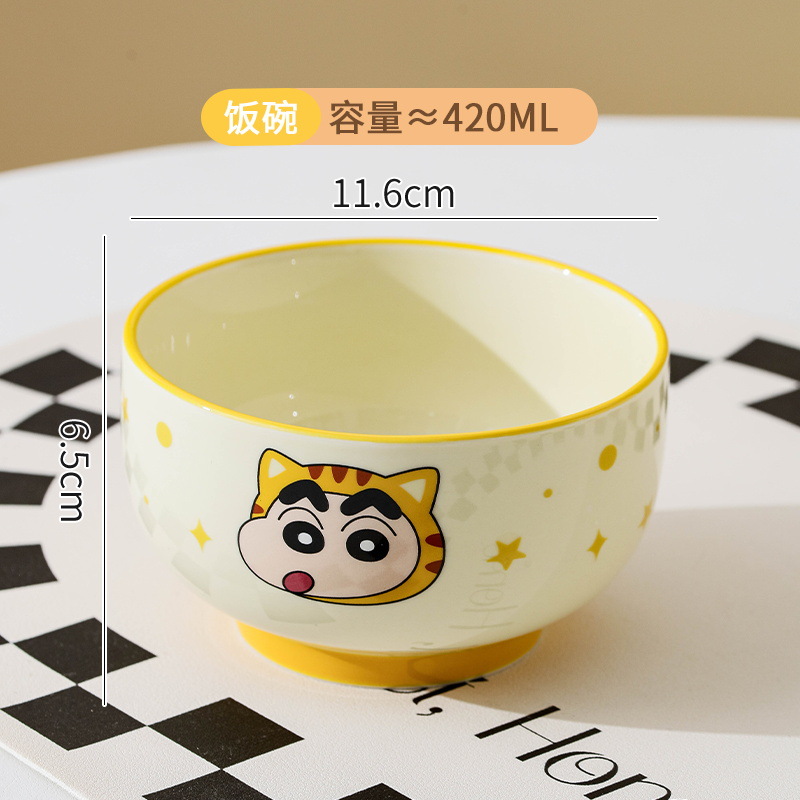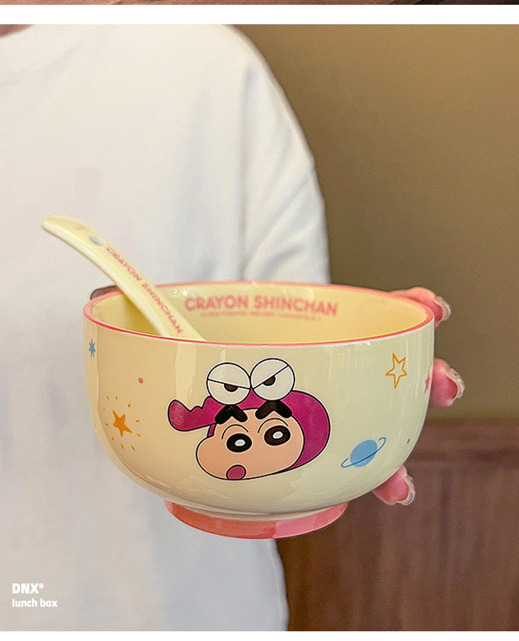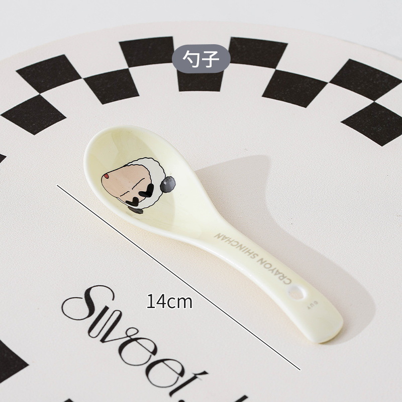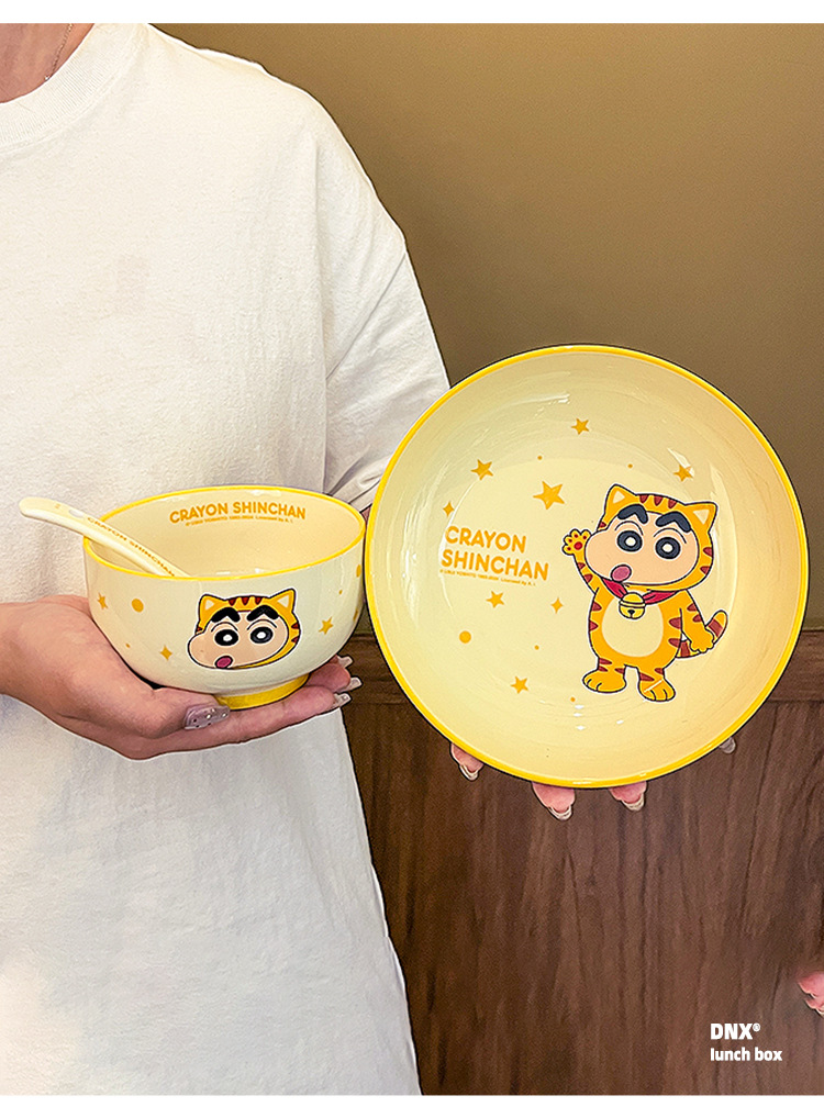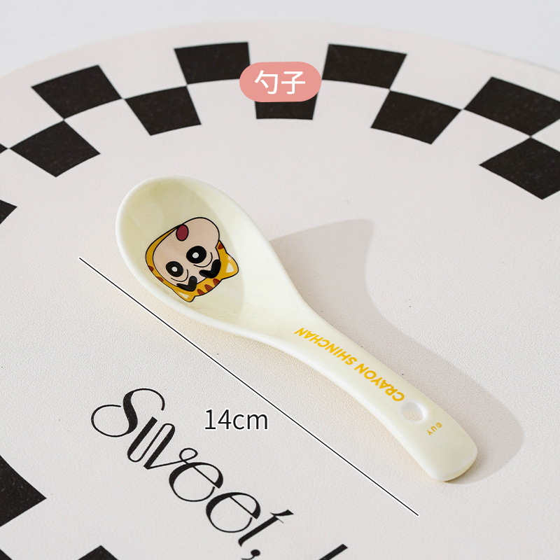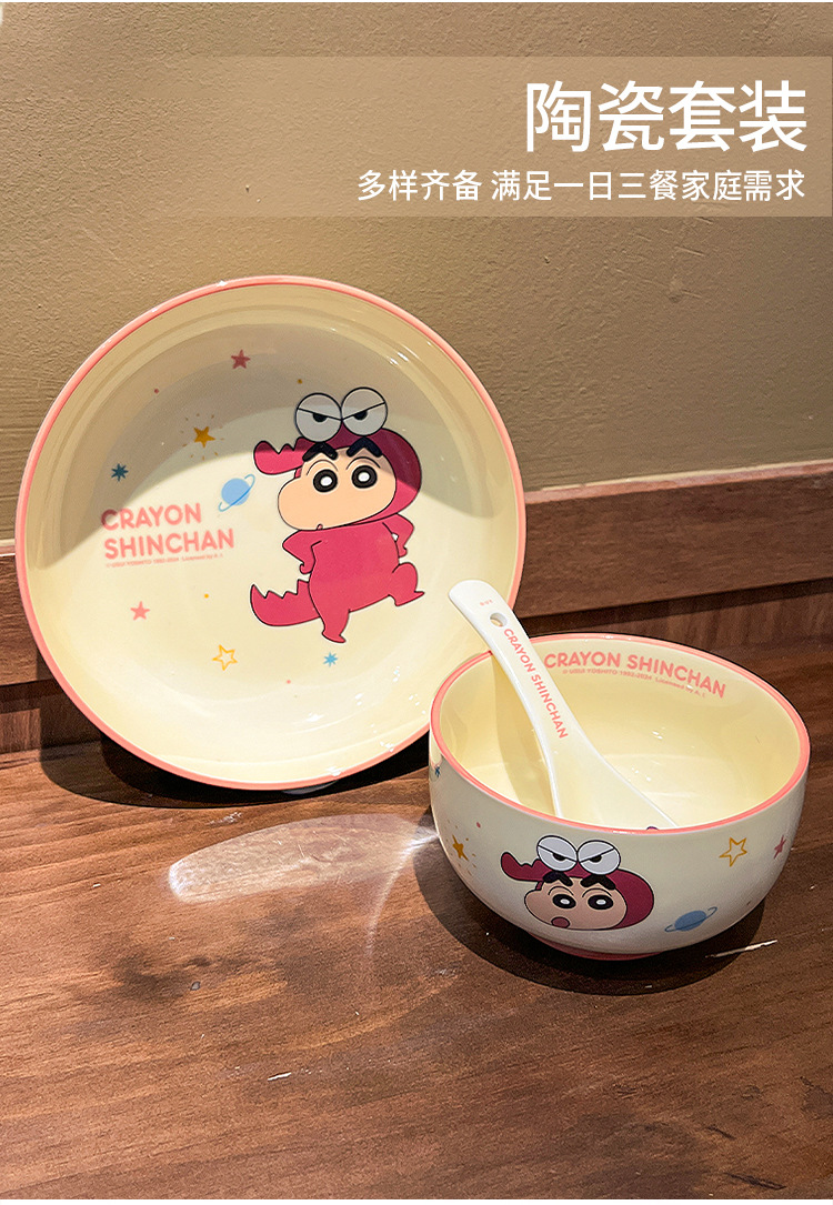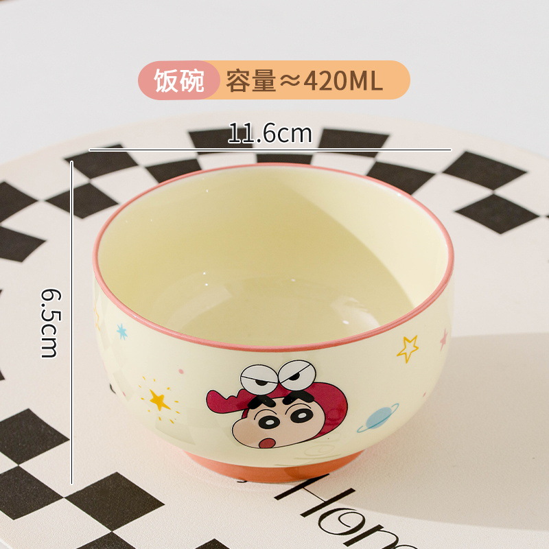 크레용 신 새로운 도착 세라믹 식기 쌀 그릇 귀여운 접시 가정용 1 인 그릇 숟가락 손 선물스토어 가기