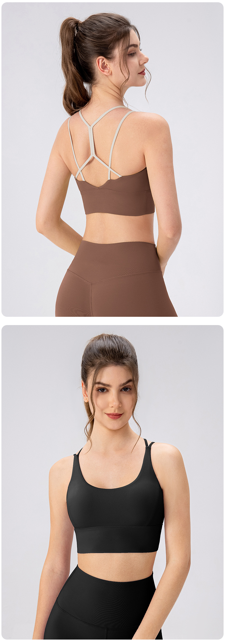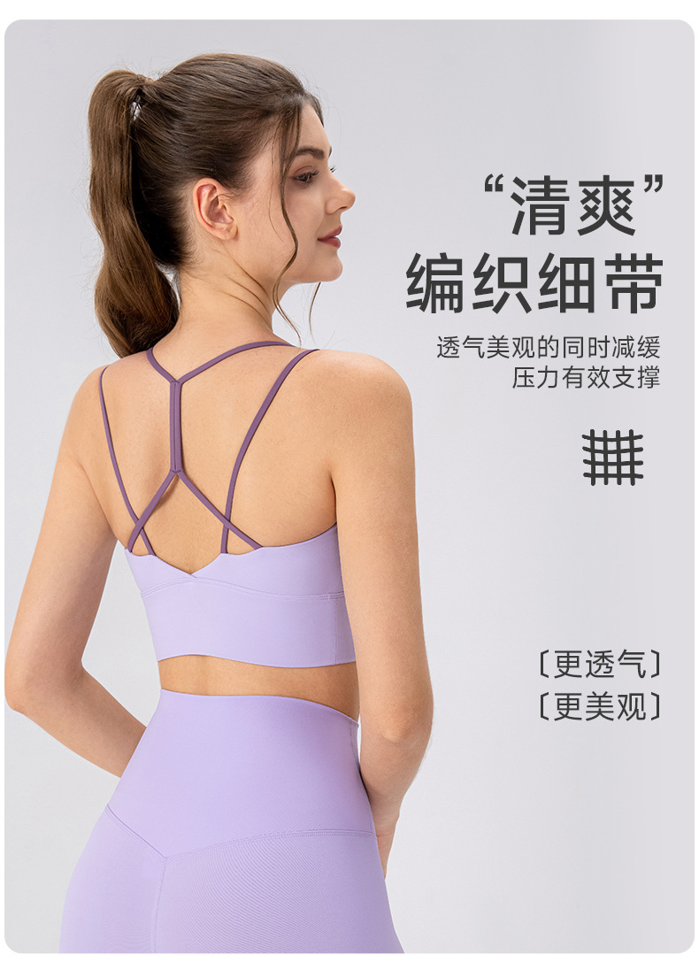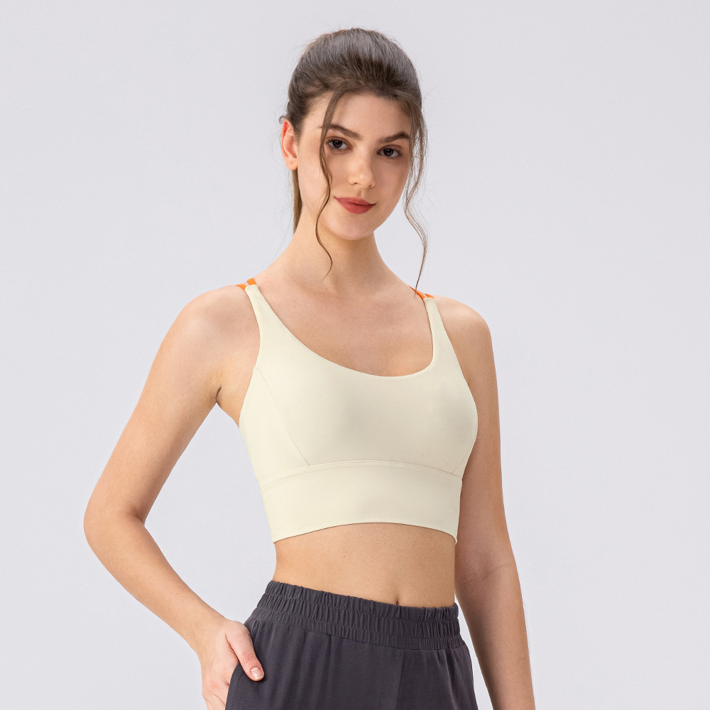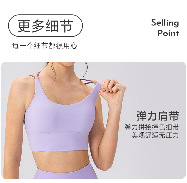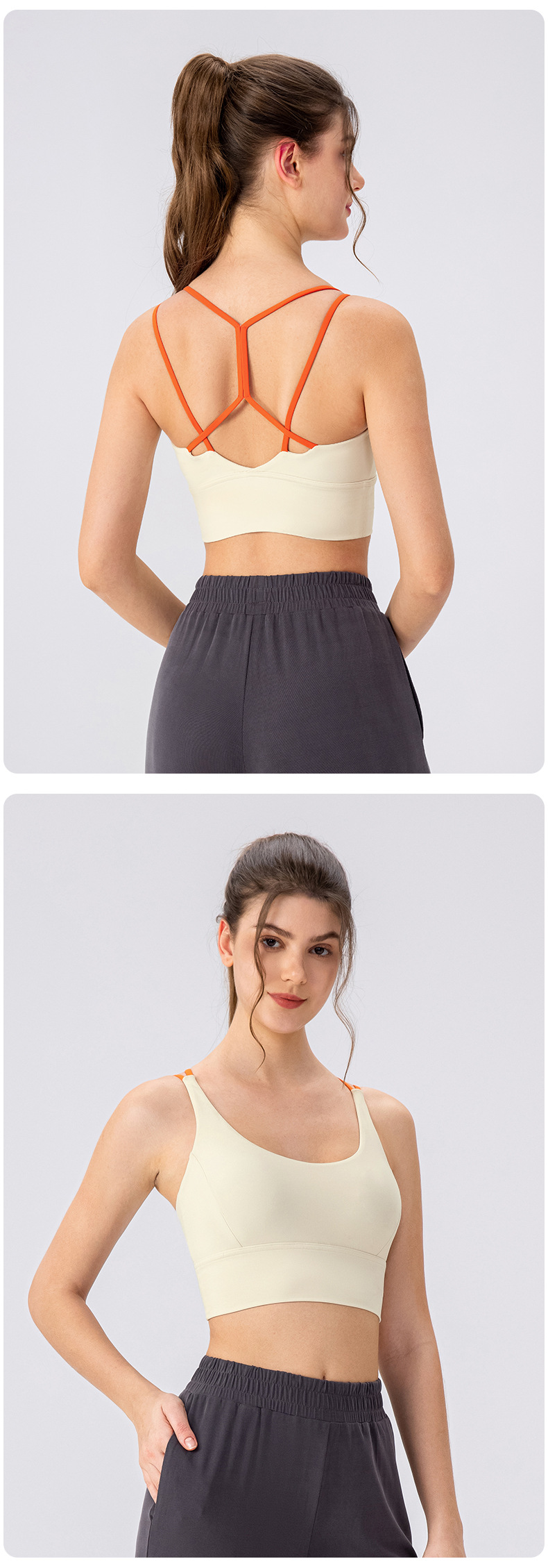 스포츠 속옷 여성의 얇은 어깨 끈 대비 색상 요가 조끼 충격 흡수 푸시 업 편안한 러닝 피트니스 브라 24017
