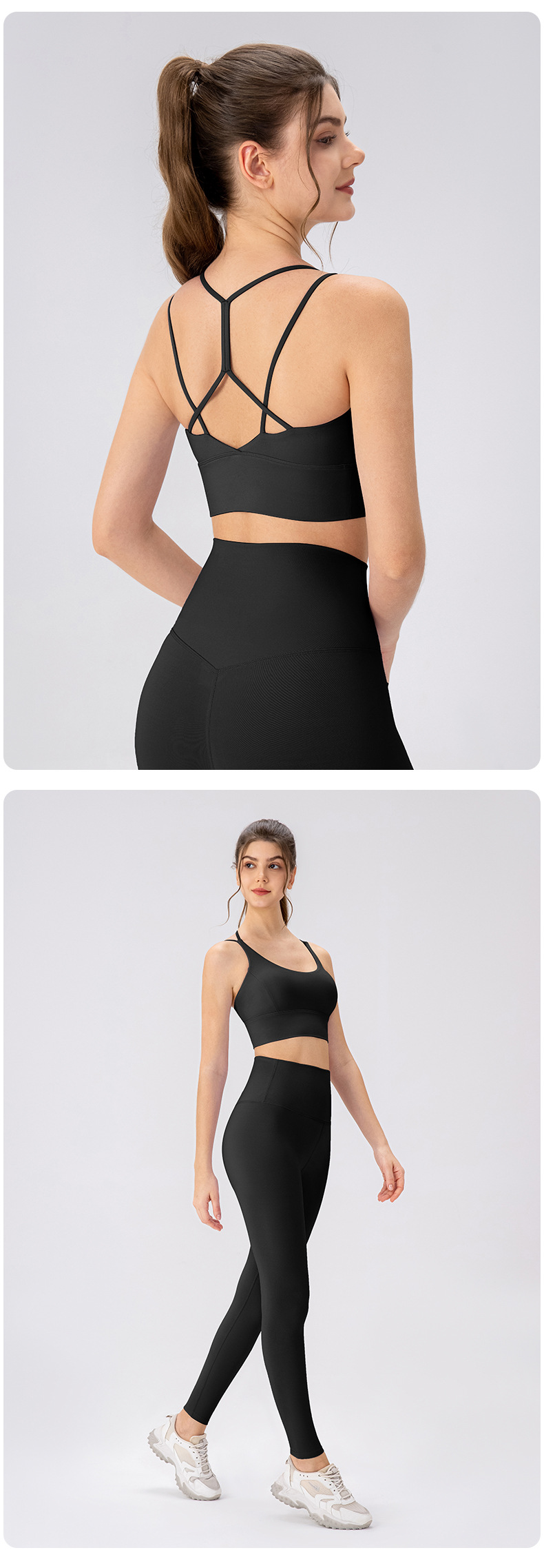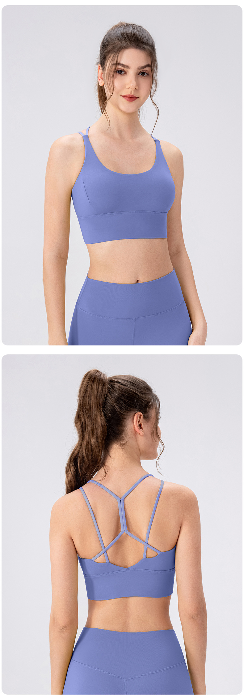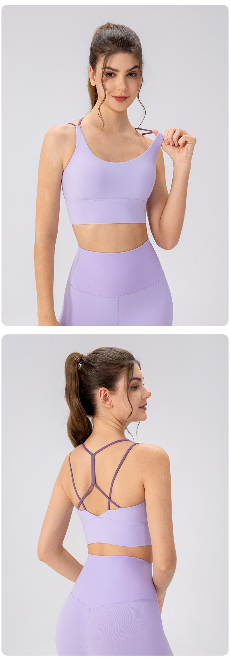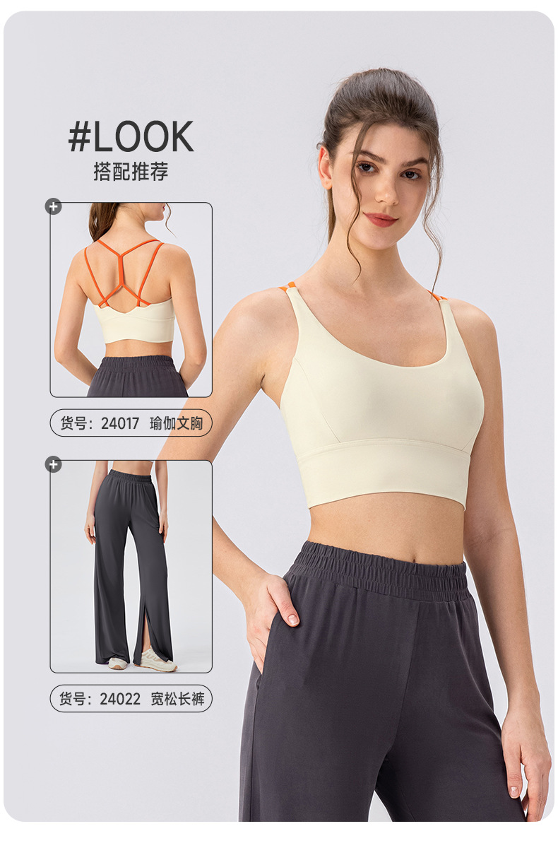 스포츠 속옷 여성의 얇은 어깨 끈 대비 색상 요가 조끼 충격 흡수 푸시 업 편안한 러닝 피트니스 브라 24017