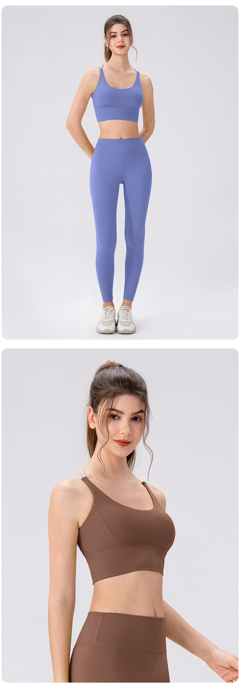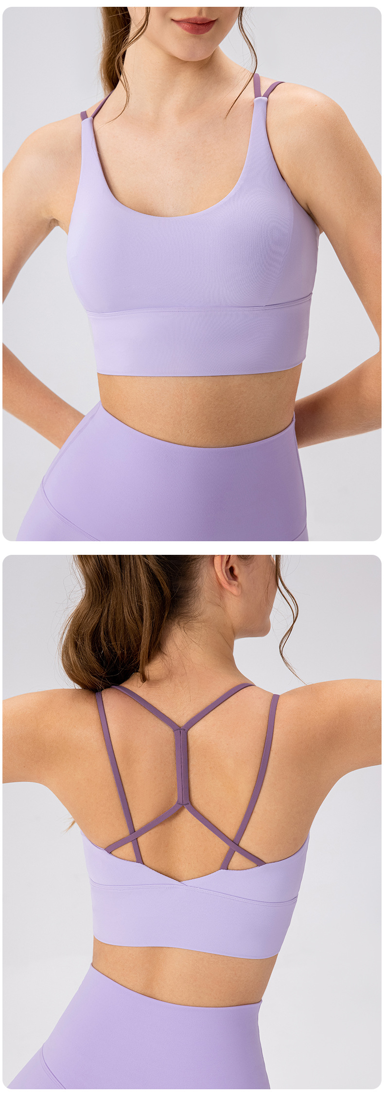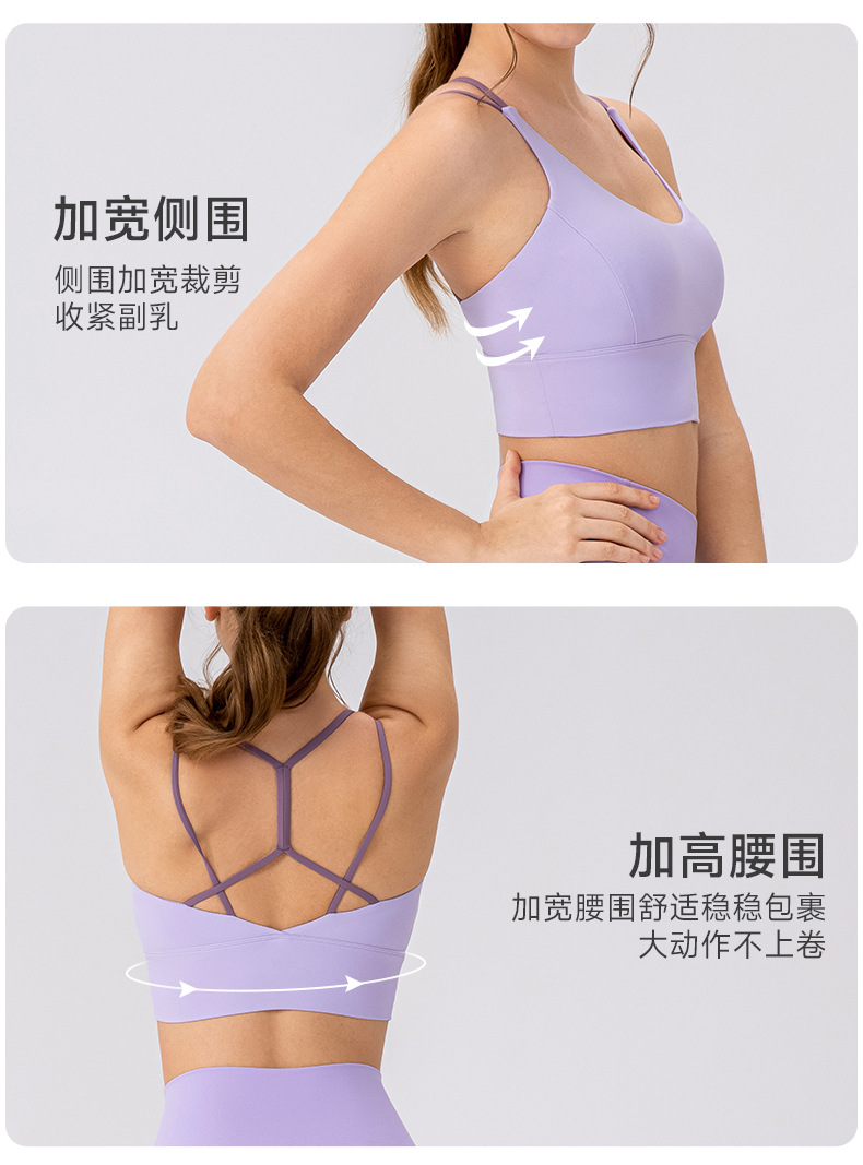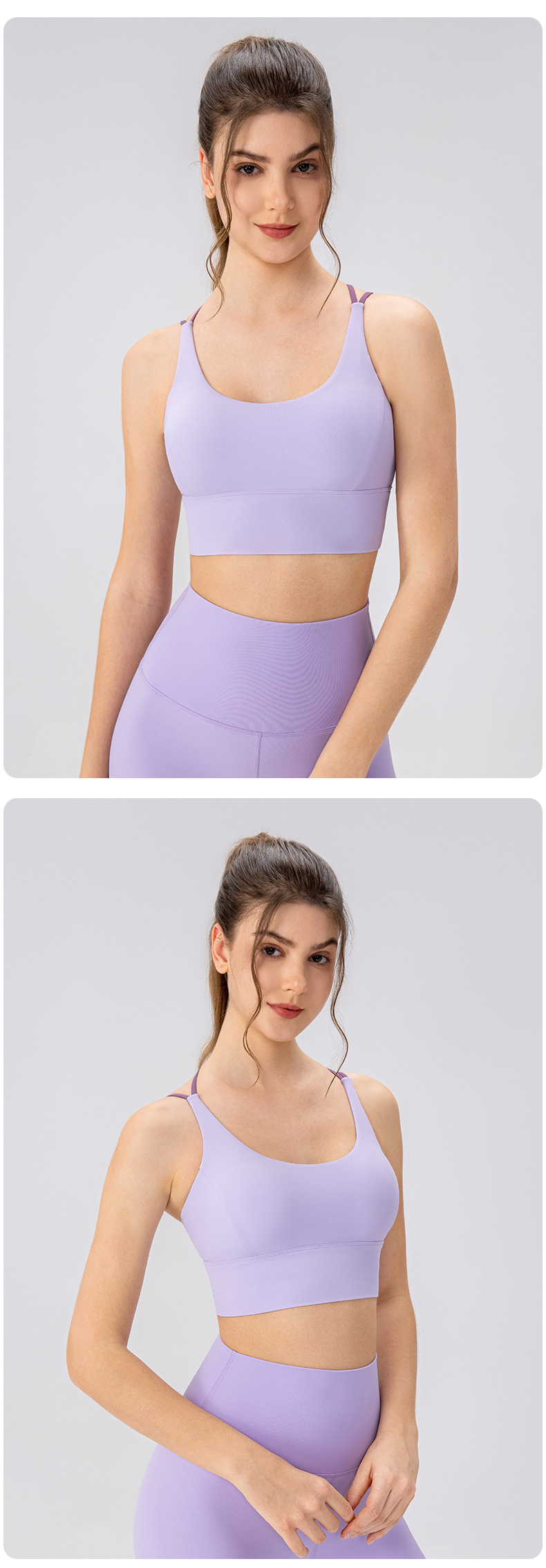 스포츠 속옷 여성의 얇은 어깨 끈 대비 색상 요가 조끼 충격 흡수 푸시 업 편안한 러닝 피트니스 브라 24017