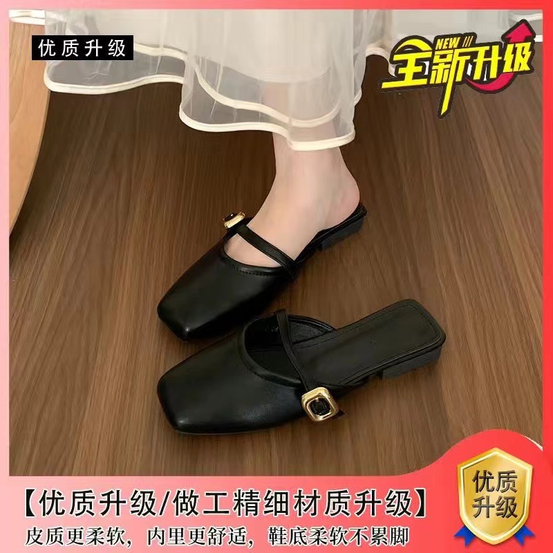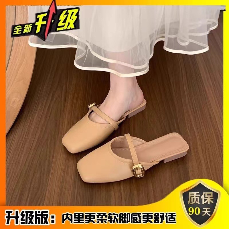2025년 여름 새로운 스타일의 여성용 원라인 반슬리퍼, 복고풍 작은 사각형 발가락, 게으른 슬리퍼, 트렌디한 외출용 슬리퍼스토어 가기