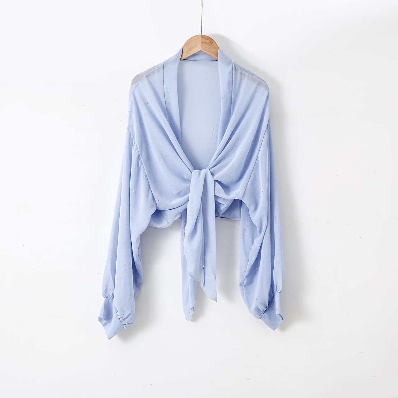2025 새로운 스타일 숄 자외선 차단 여름 하이 엔드 긴팔 여성 한국어 버전 다목적 에어컨 룸 실크 스카프 솔리드 컬러 스카프스토어 가기