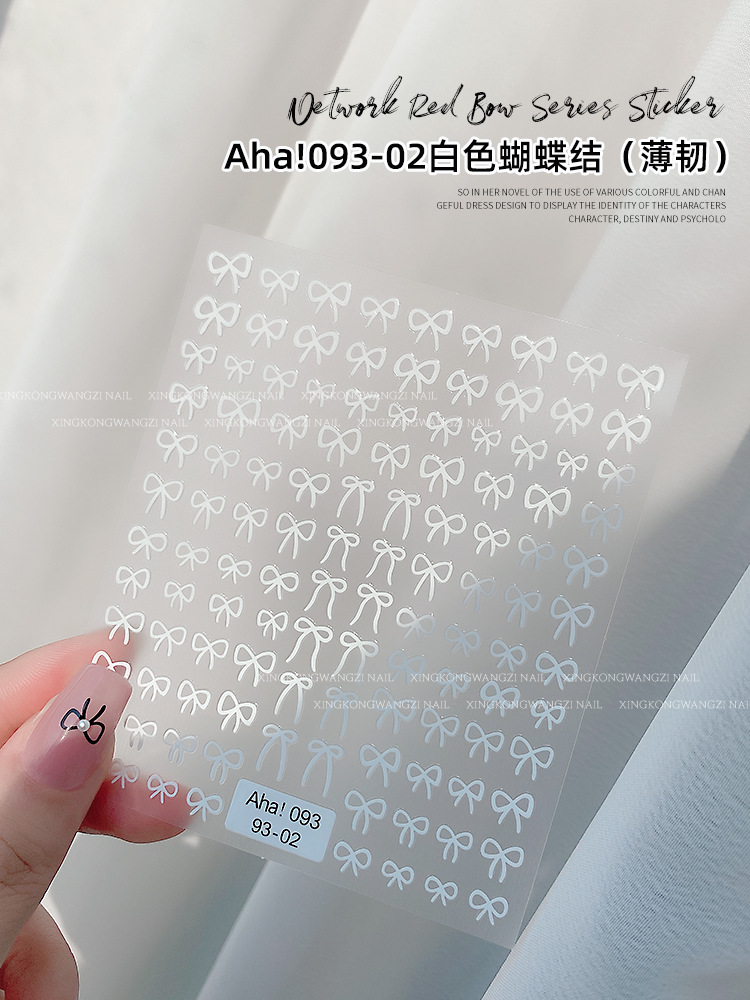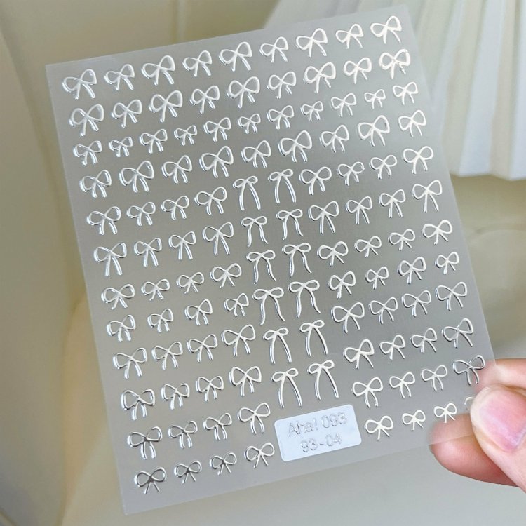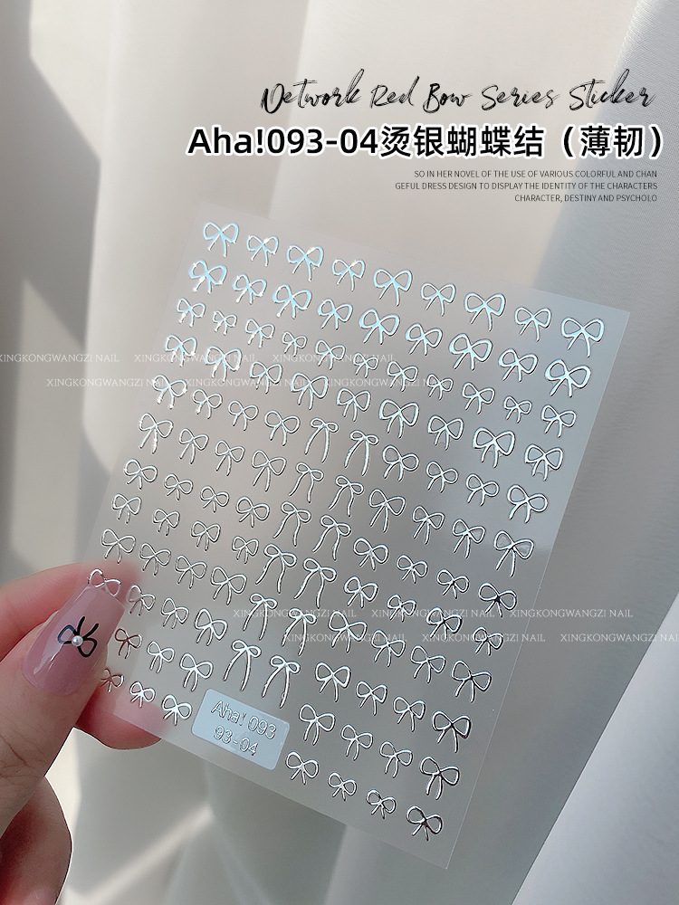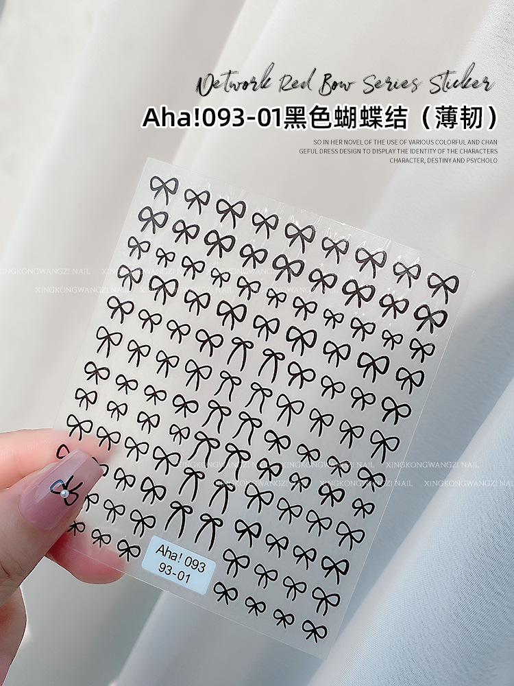 네일 아트 활 넥타이 스티커 흑백 실버 얇은 터프 활 타이 데칼 3D 네일 장식 스티커