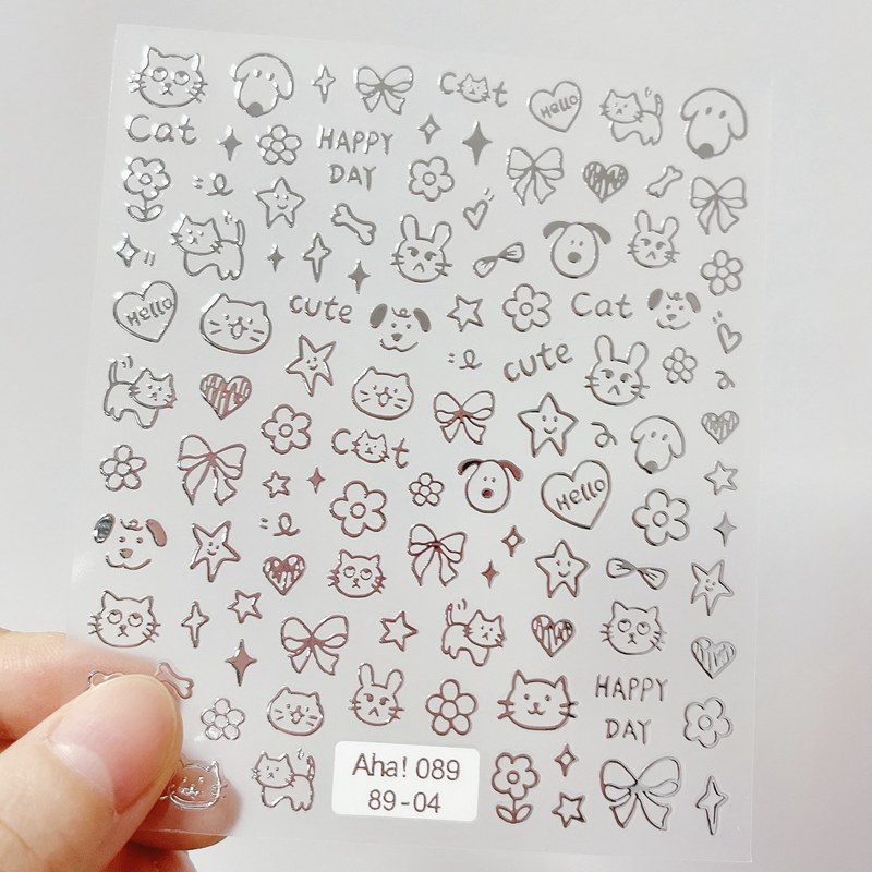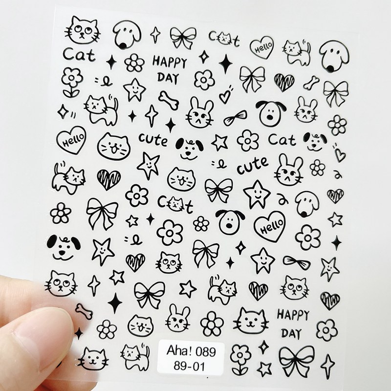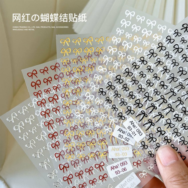네일 아트 활 넥타이 스티커 흑백 실버 얇은 터프 활 타이 데칼 3D 네일 장식 스티커스토어 가기