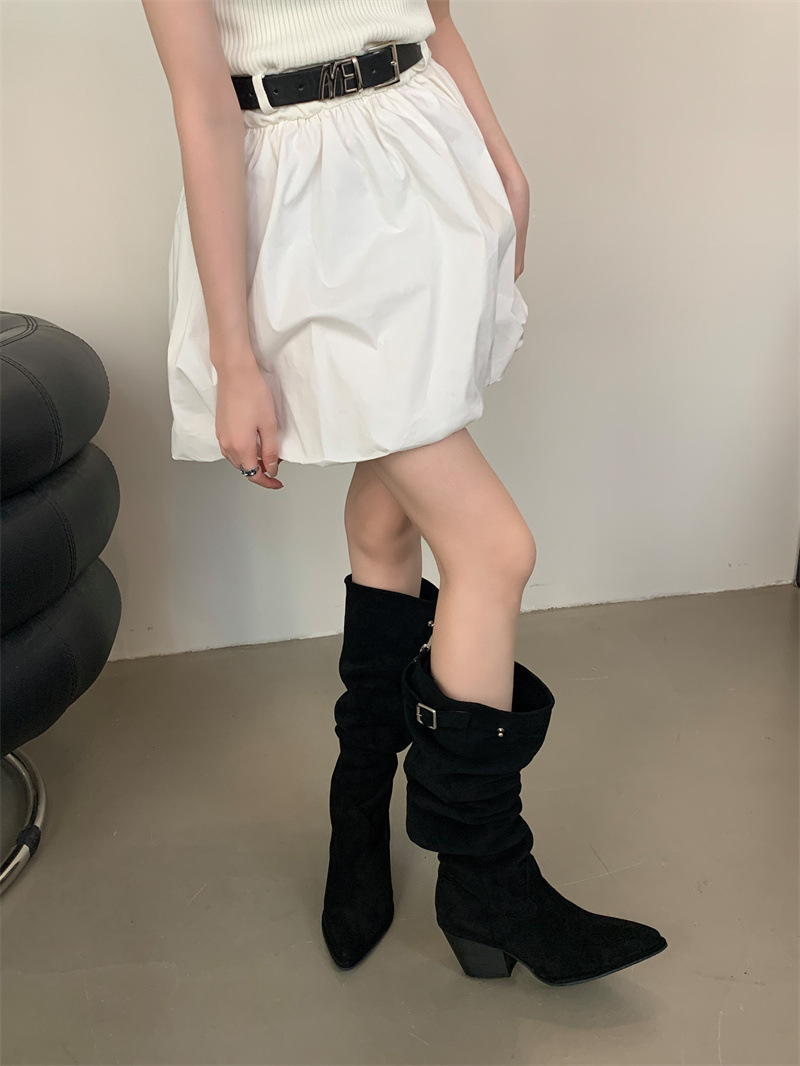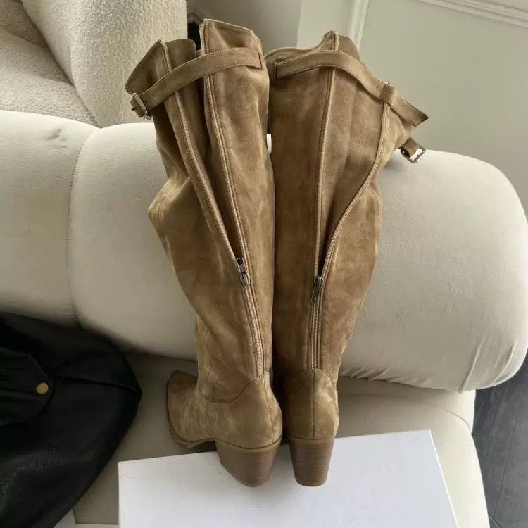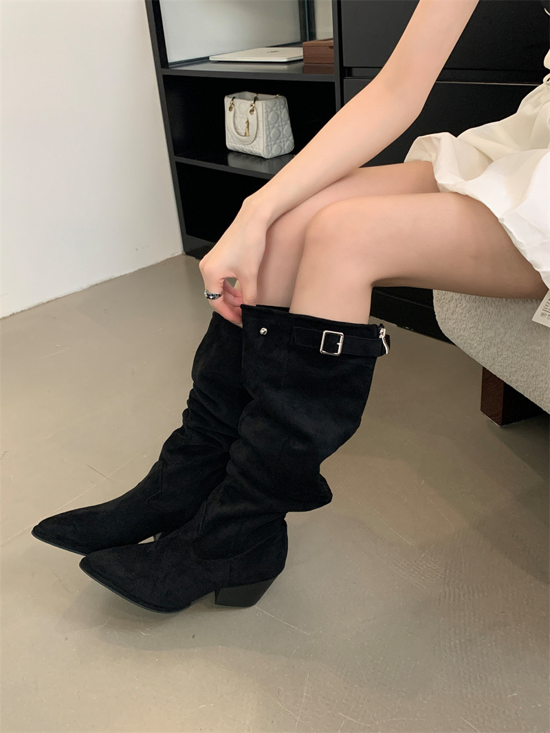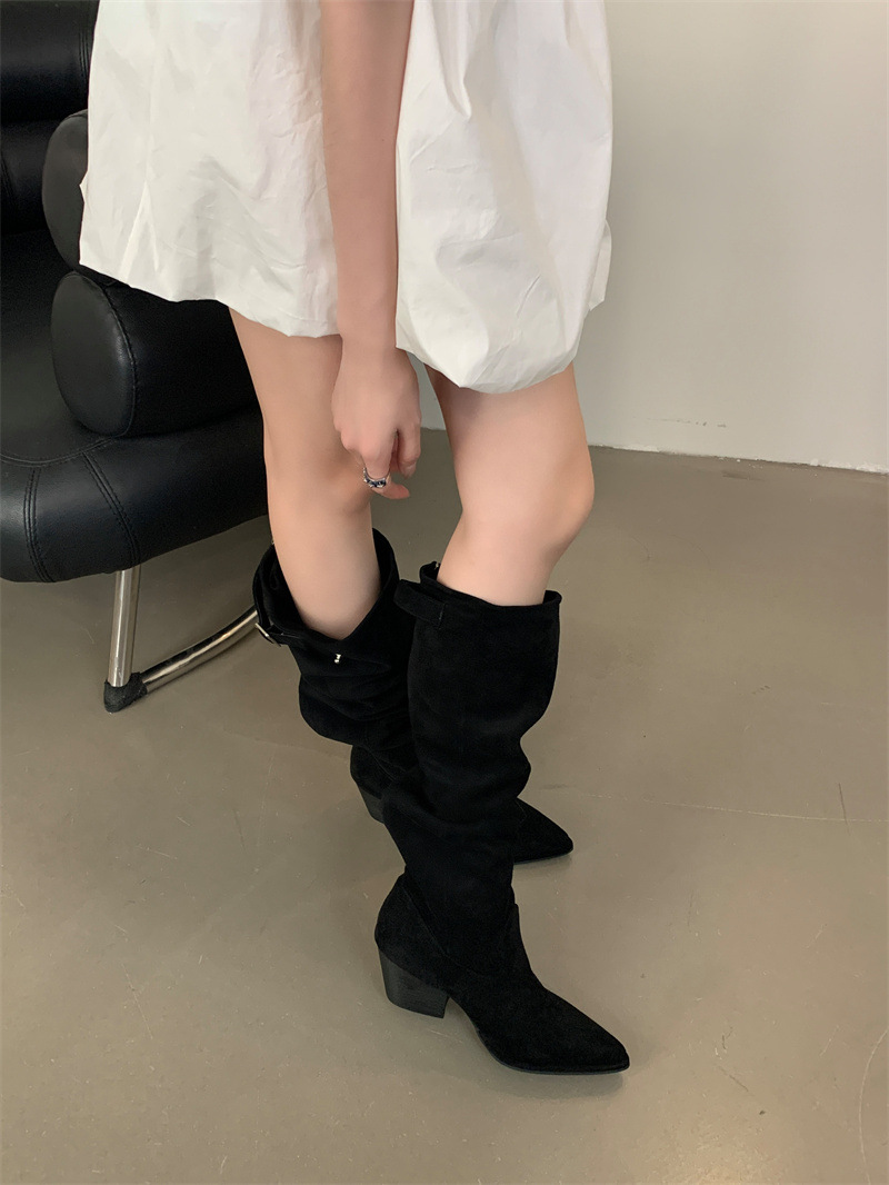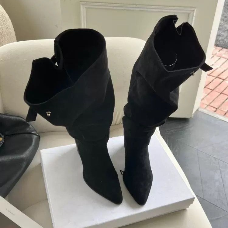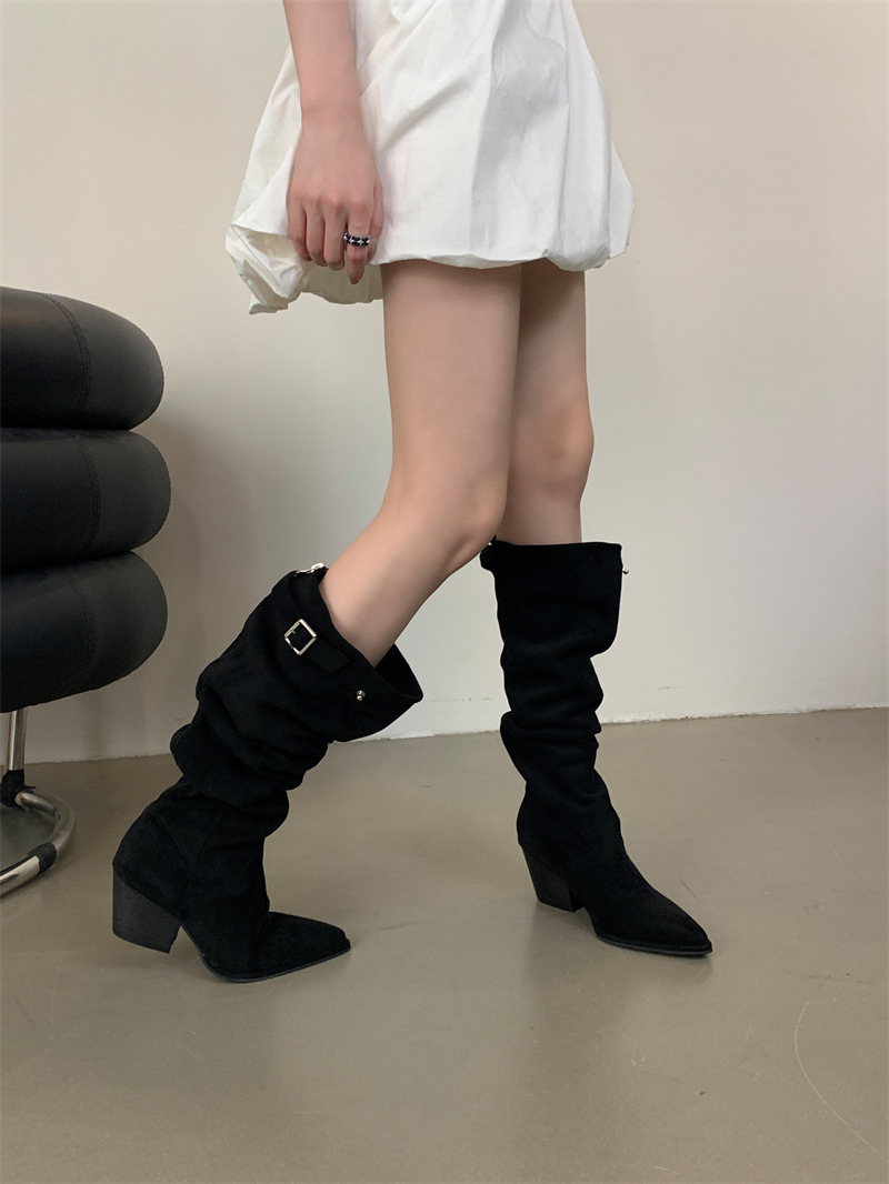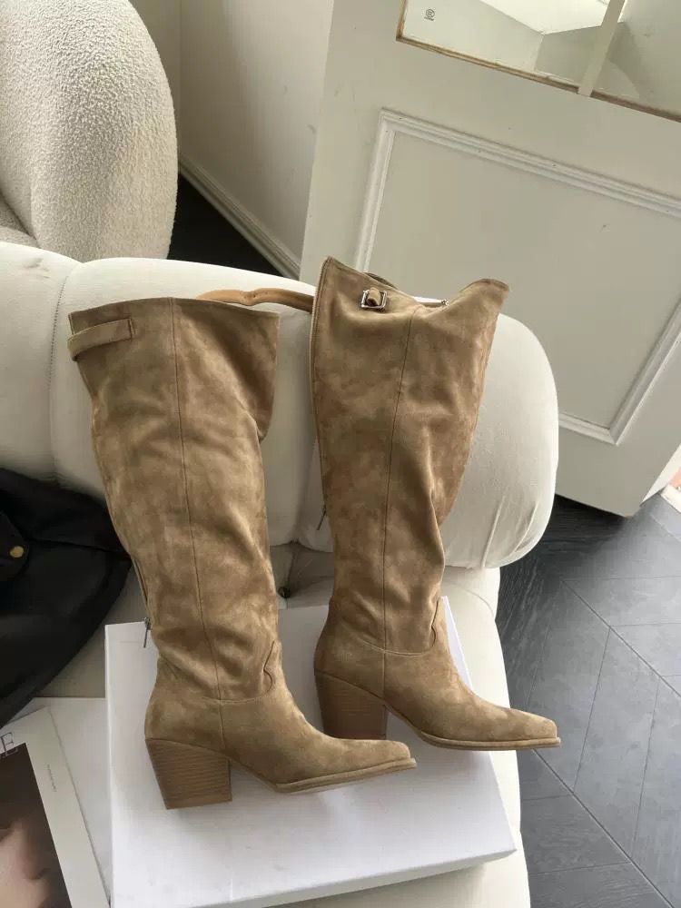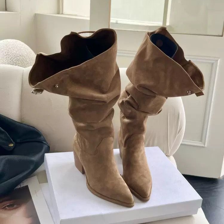송시시 2025 신상 유럽풍 핫걸 부츠, 초대형 통굽 부츠, 두꺼운 굽, 뾰족한 앞코, 하이힐, 슬림한 라이더 부츠스토어 가기