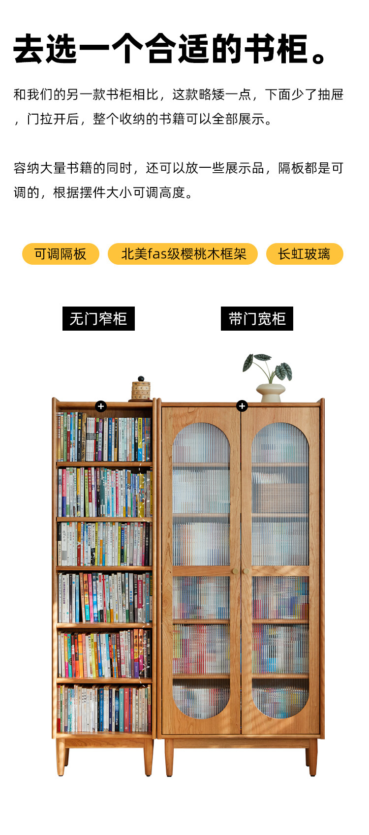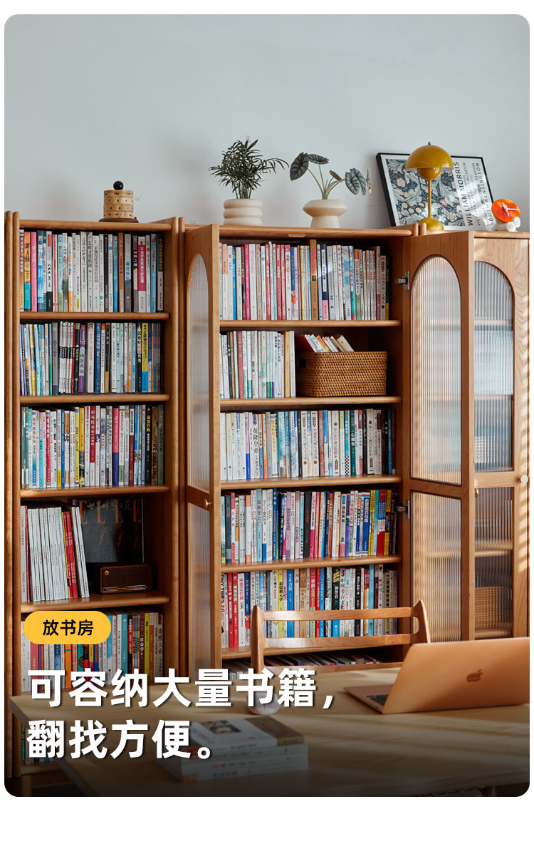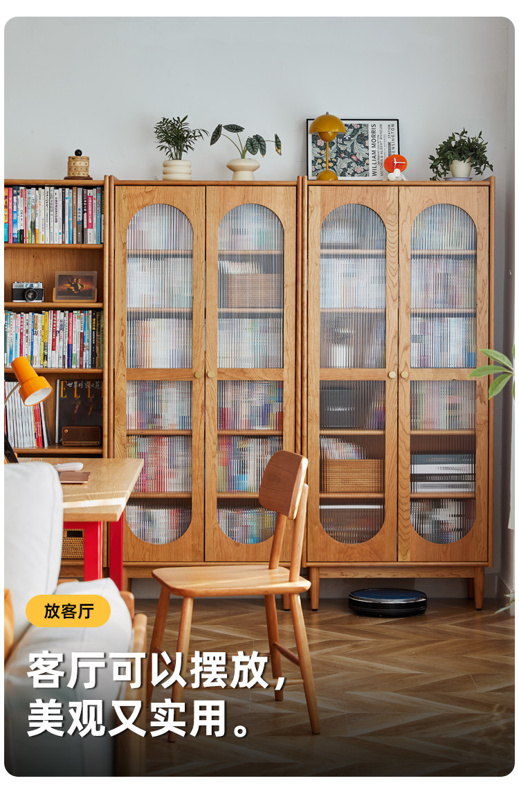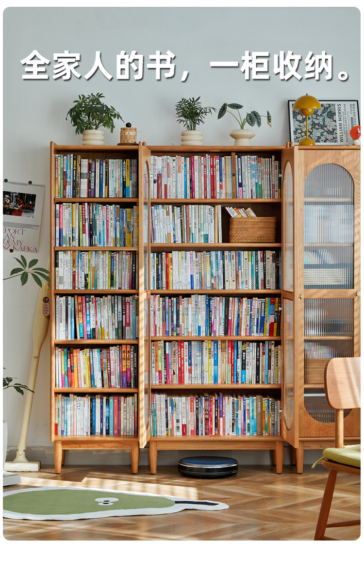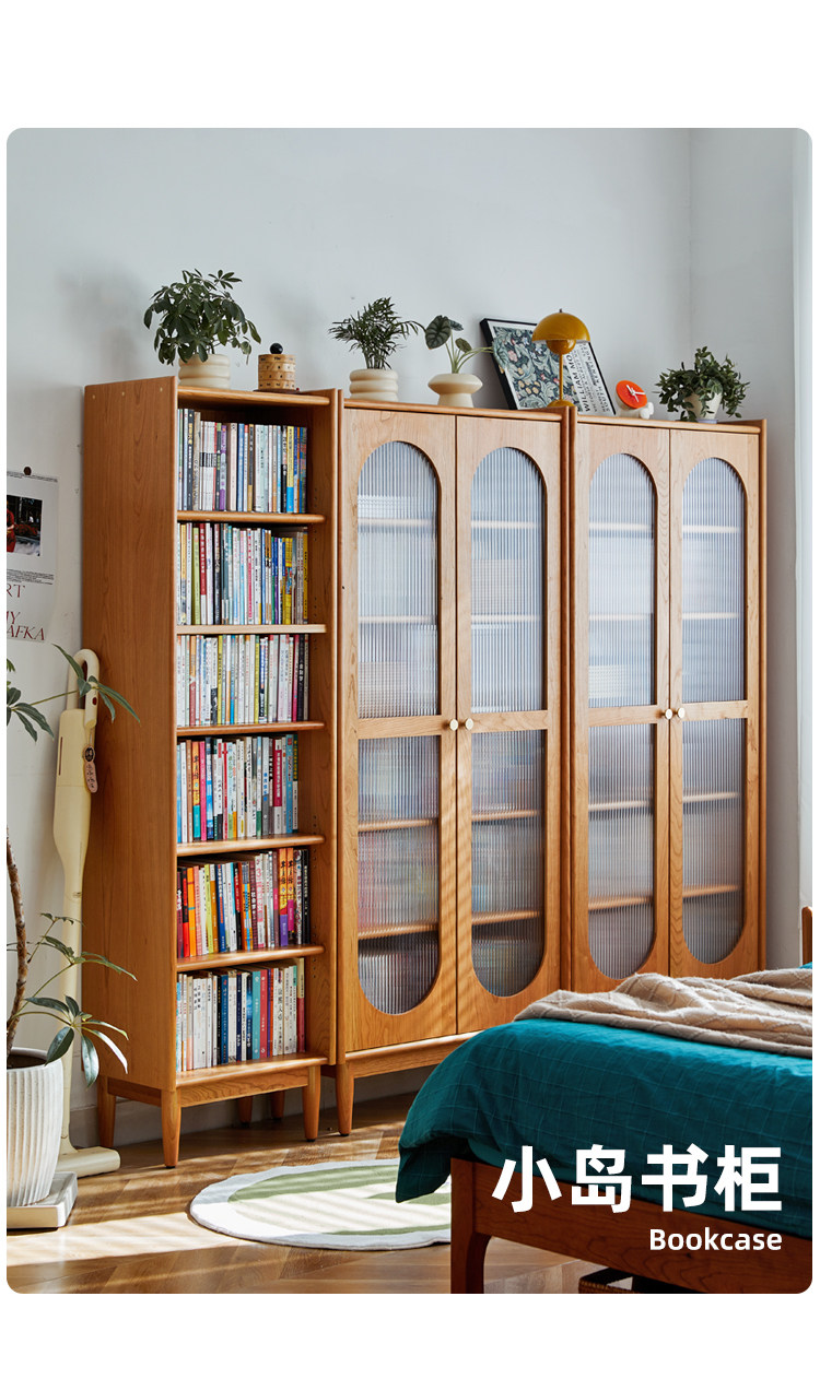 북유럽 솔리드 우드 책장 가정용 작은 아파트 책장 유리 문 벽 사무실 간단한 바닥 보관 책장스토어 가기
