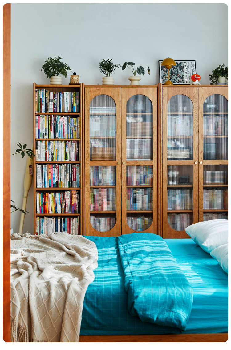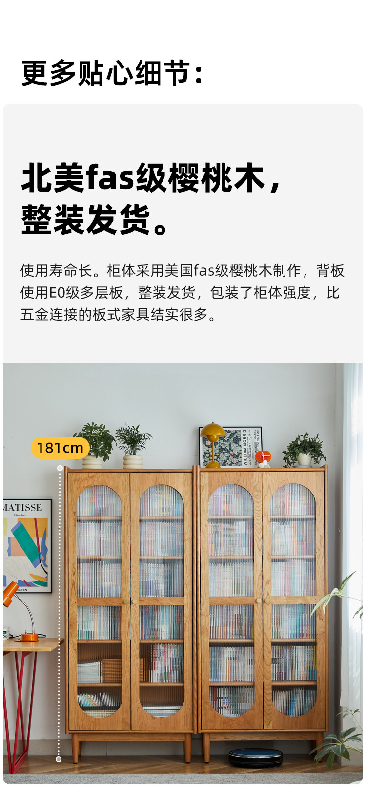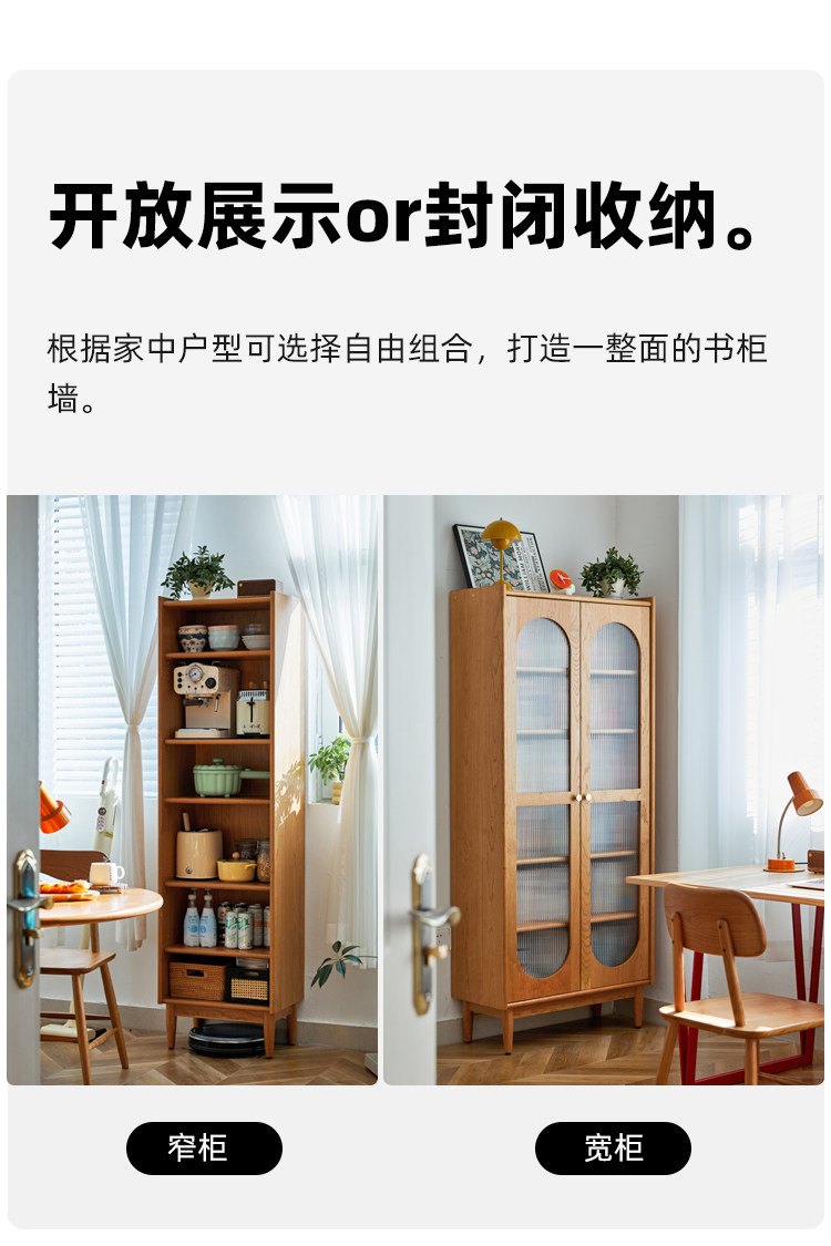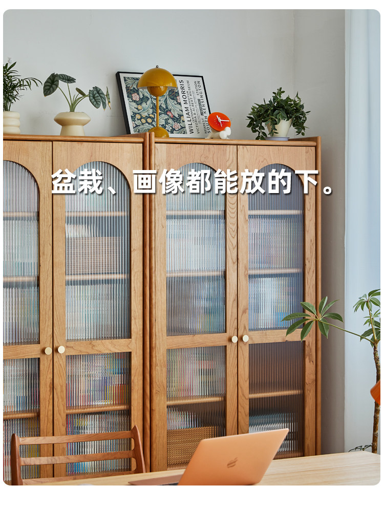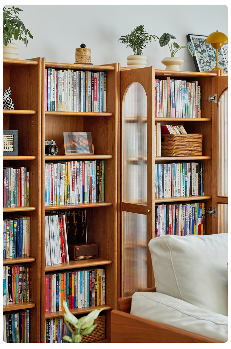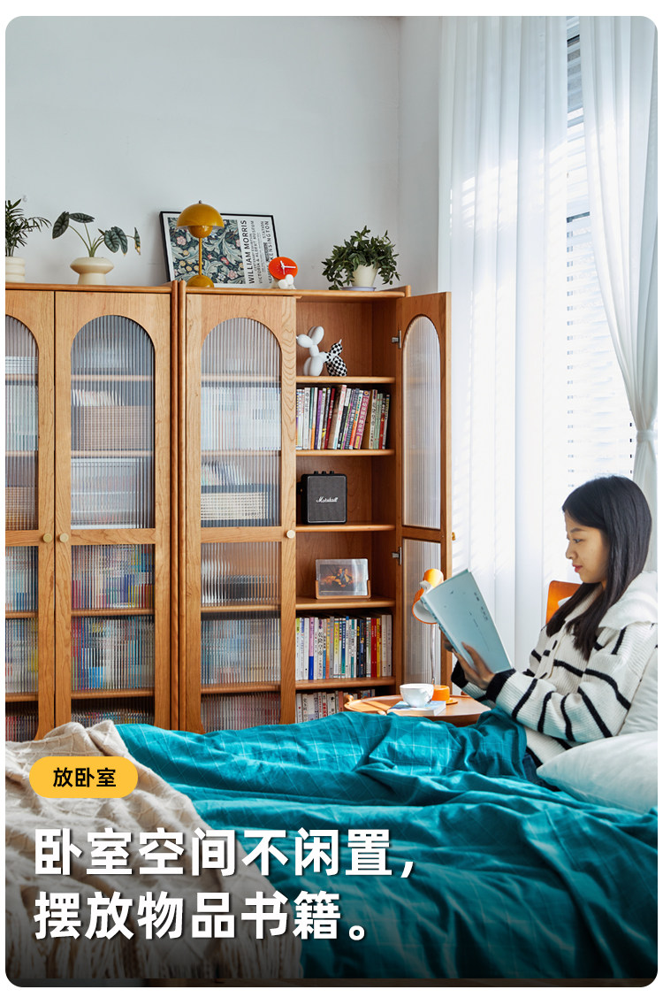 북유럽 솔리드 우드 책장 가정용 작은 아파트 책장 유리 문 벽 사무실 간단한 바닥 보관 책장스토어 가기