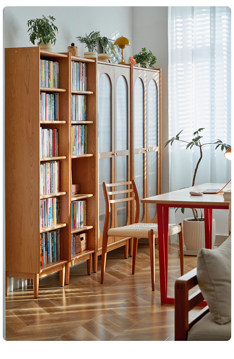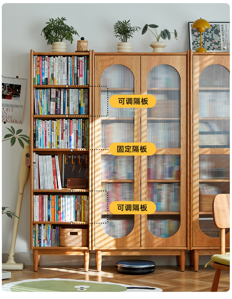 북유럽 솔리드 우드 책장 가정용 작은 아파트 책장 유리 문 벽 사무실 간단한 바닥 보관 책장