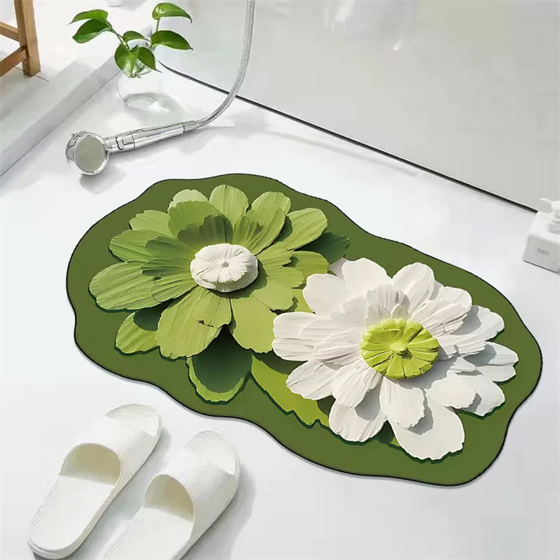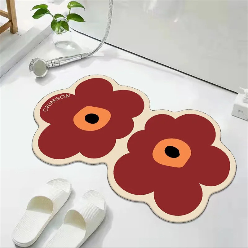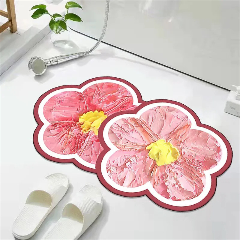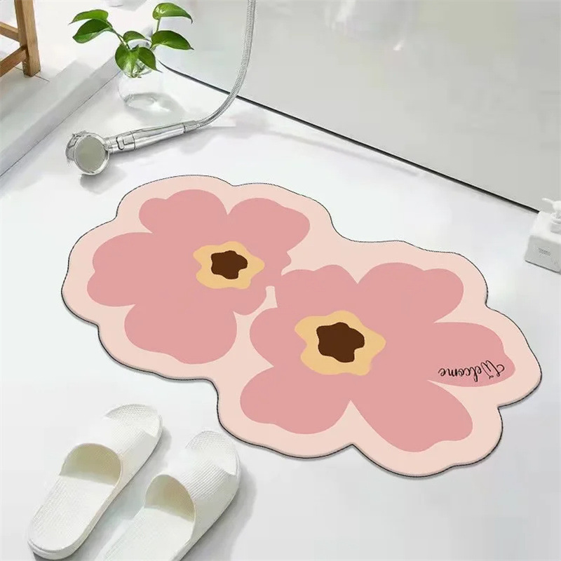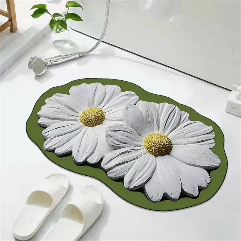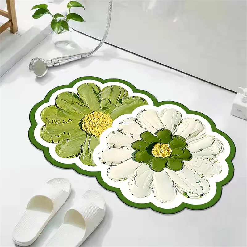 꽃무늬 규조토 흡수 매트 화장실 욕실 출입구 미끄럼 방지 발매트 화장실 카펫 도어매트 흡수 미끄럼 방지