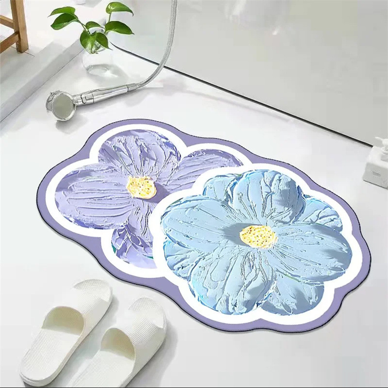 꽃무늬 규조토 흡수 매트 화장실 욕실 출입구 미끄럼 방지 발매트 화장실 카펫 도어매트 흡수 미끄럼 방지스토어 가기