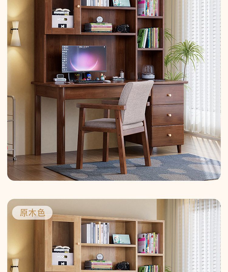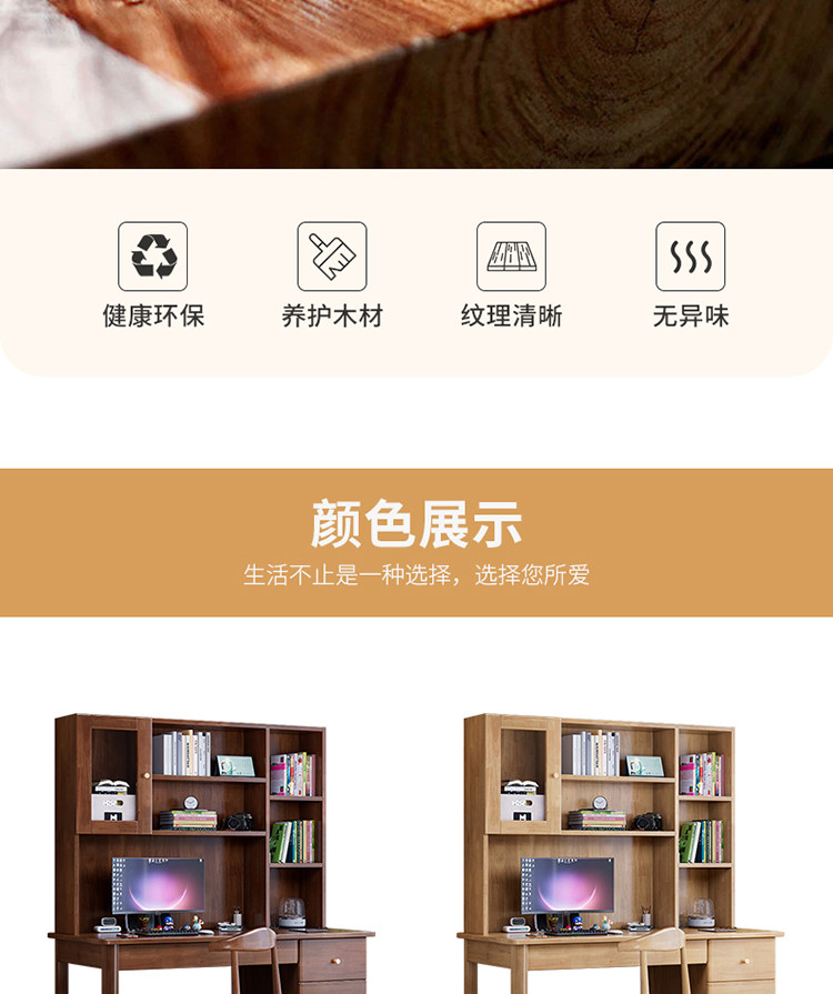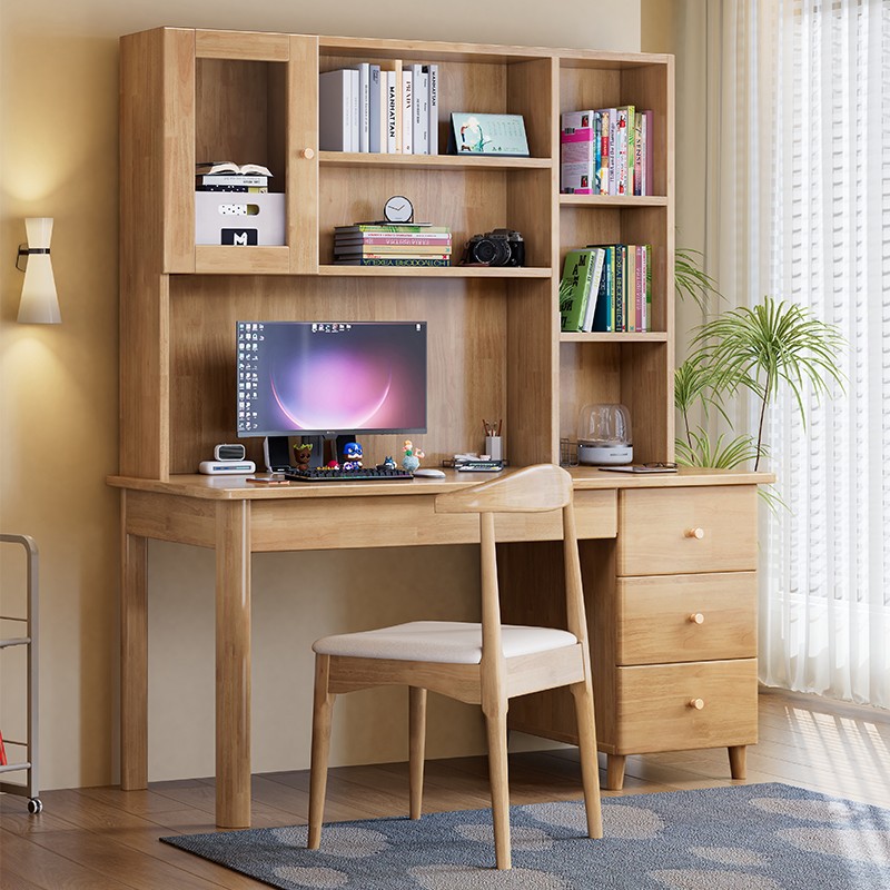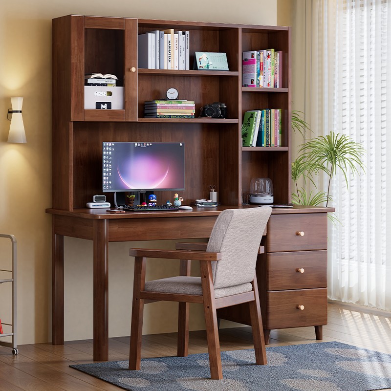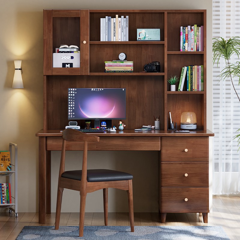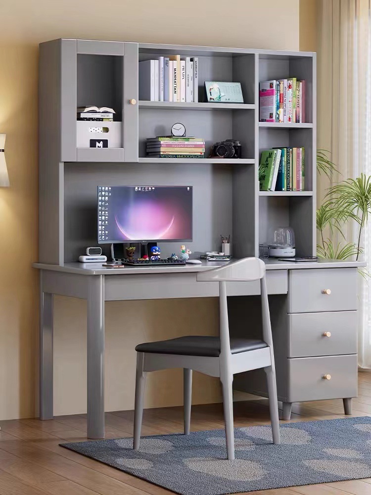 모든 단단한 나무 책상 책장 통합 테이블 성인 홈 사무실 컴퓨터 책상 학생 침실 간단한 연구 테이블