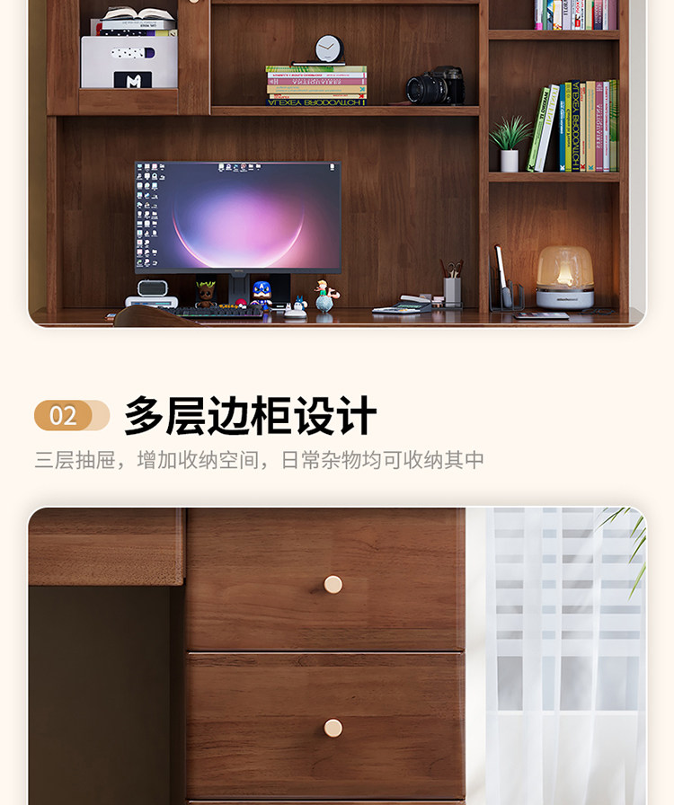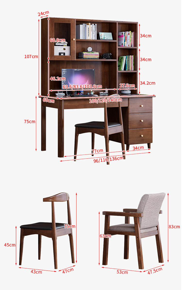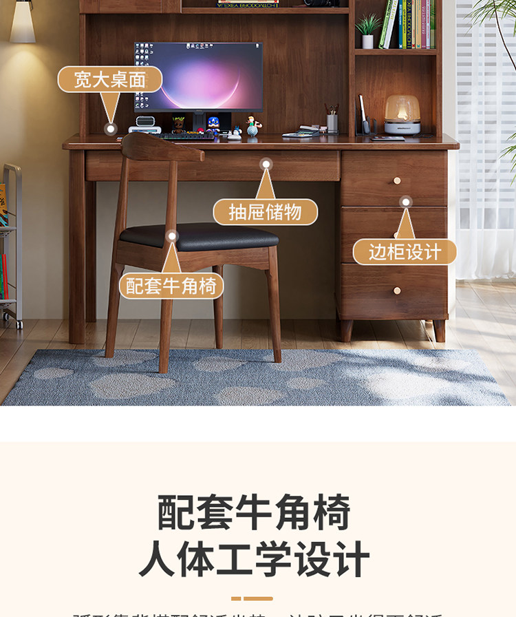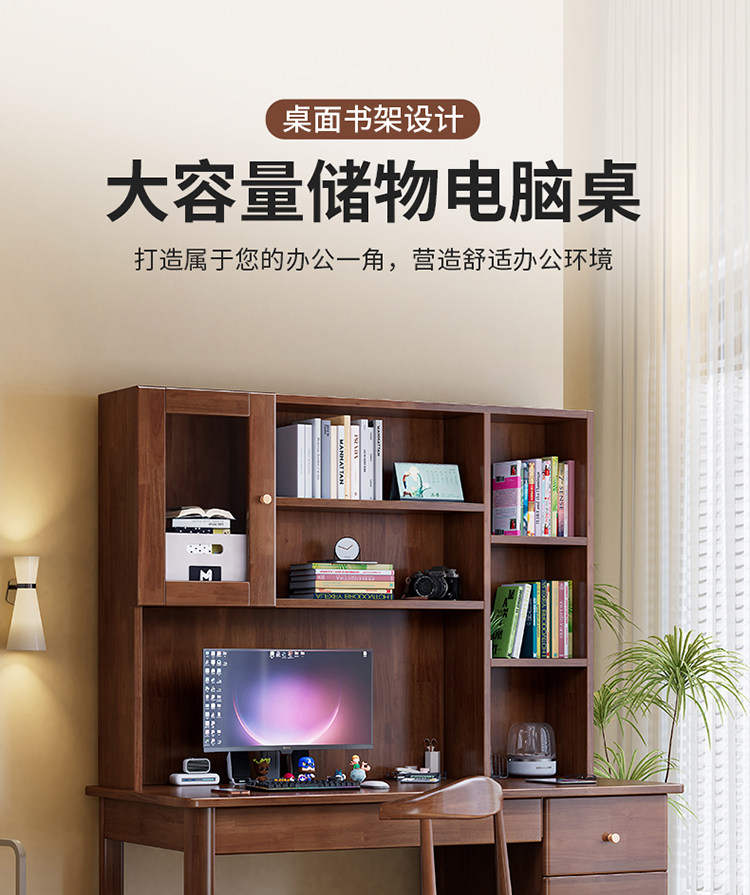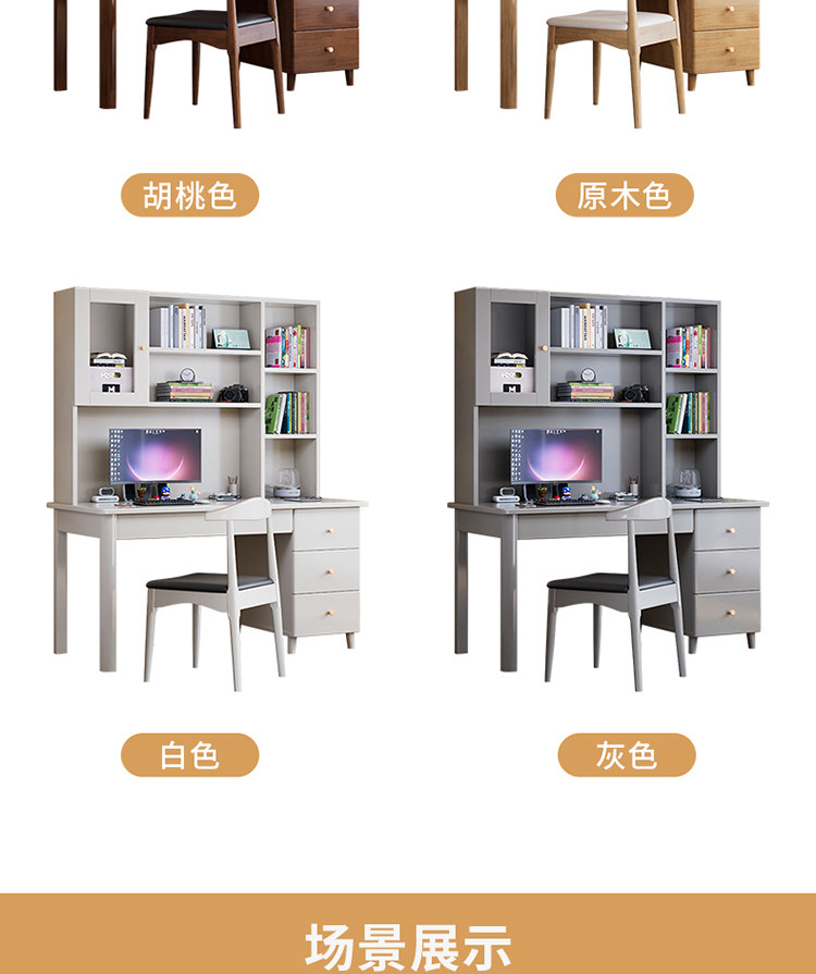 모든 단단한 나무 책상 책장 통합 테이블 성인 홈 사무실 컴퓨터 책상 학생 침실 간단한 연구 테이블