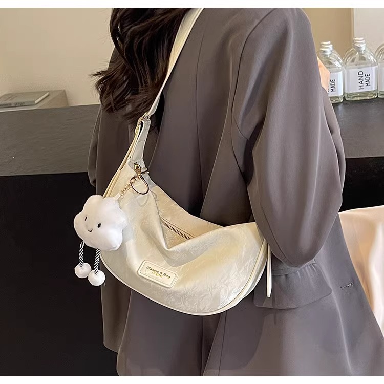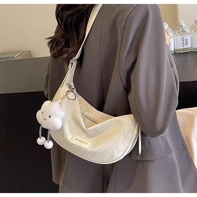 가방 여성의 2024 새로운 디자인 섬유 틈새 여름 올 매치 디자인 센스 어깨 크로스 바디 백 만두 백
