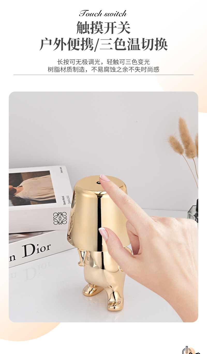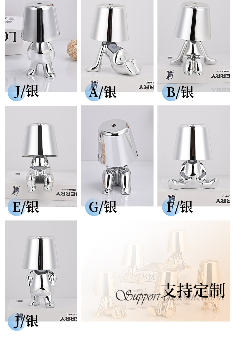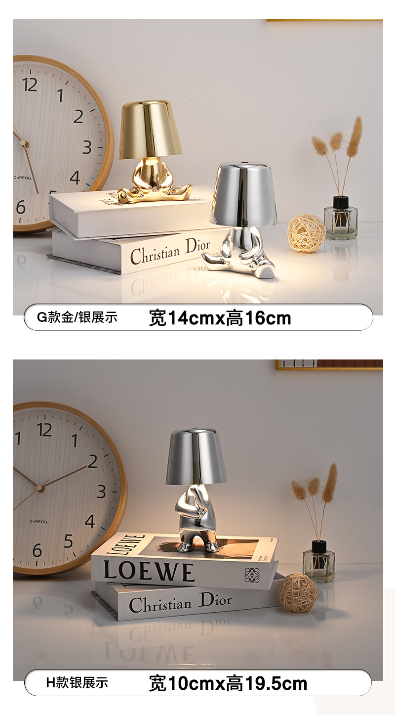 창의적인 장식품 테이블 램프 작은 골드맨 USB 충전 터치 스위치 야간등 침실 바 테이블 램프 데스크탑스토어 가기