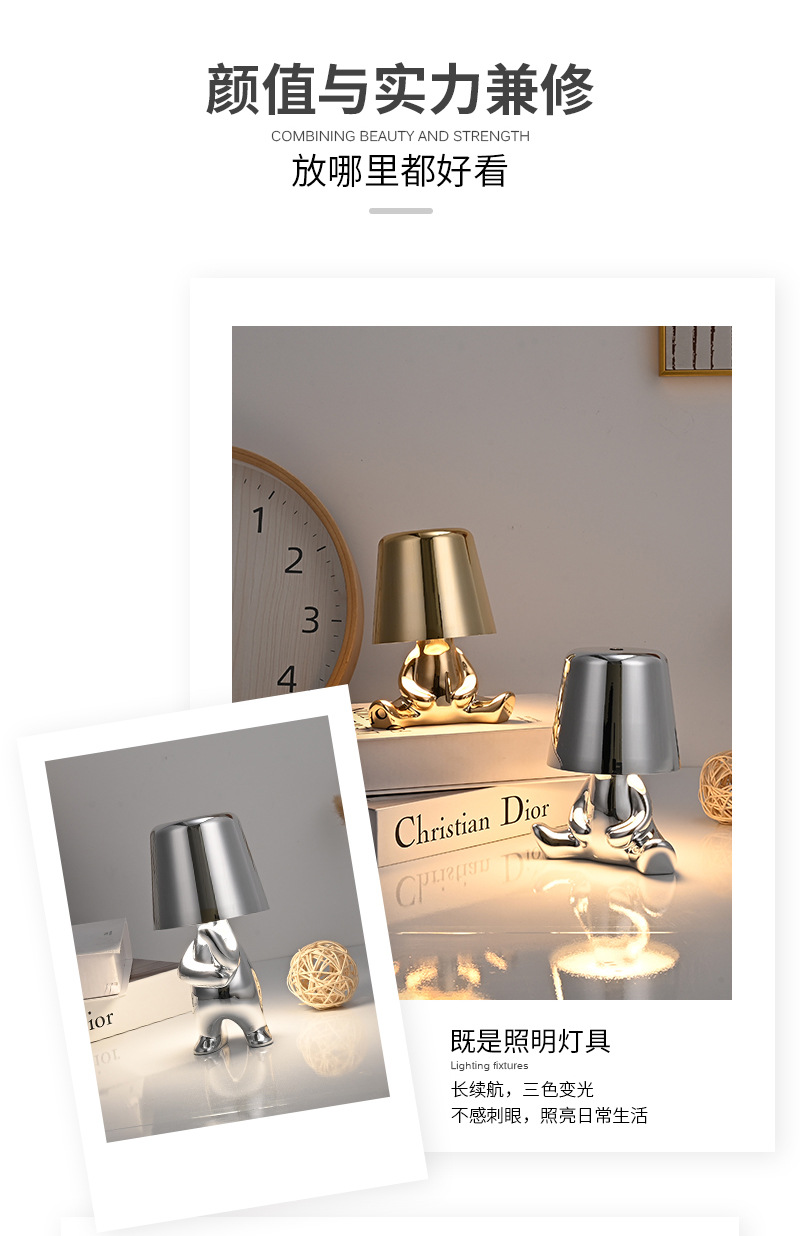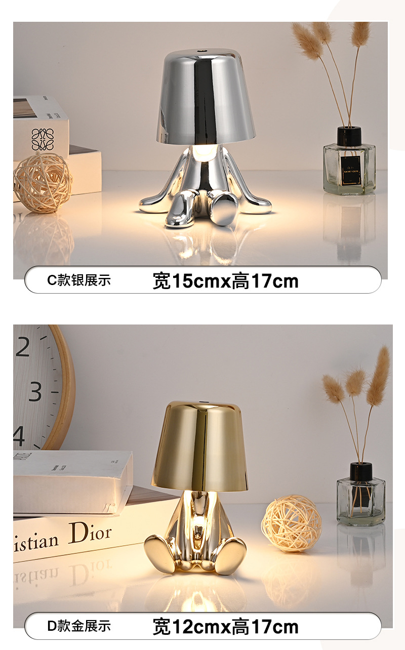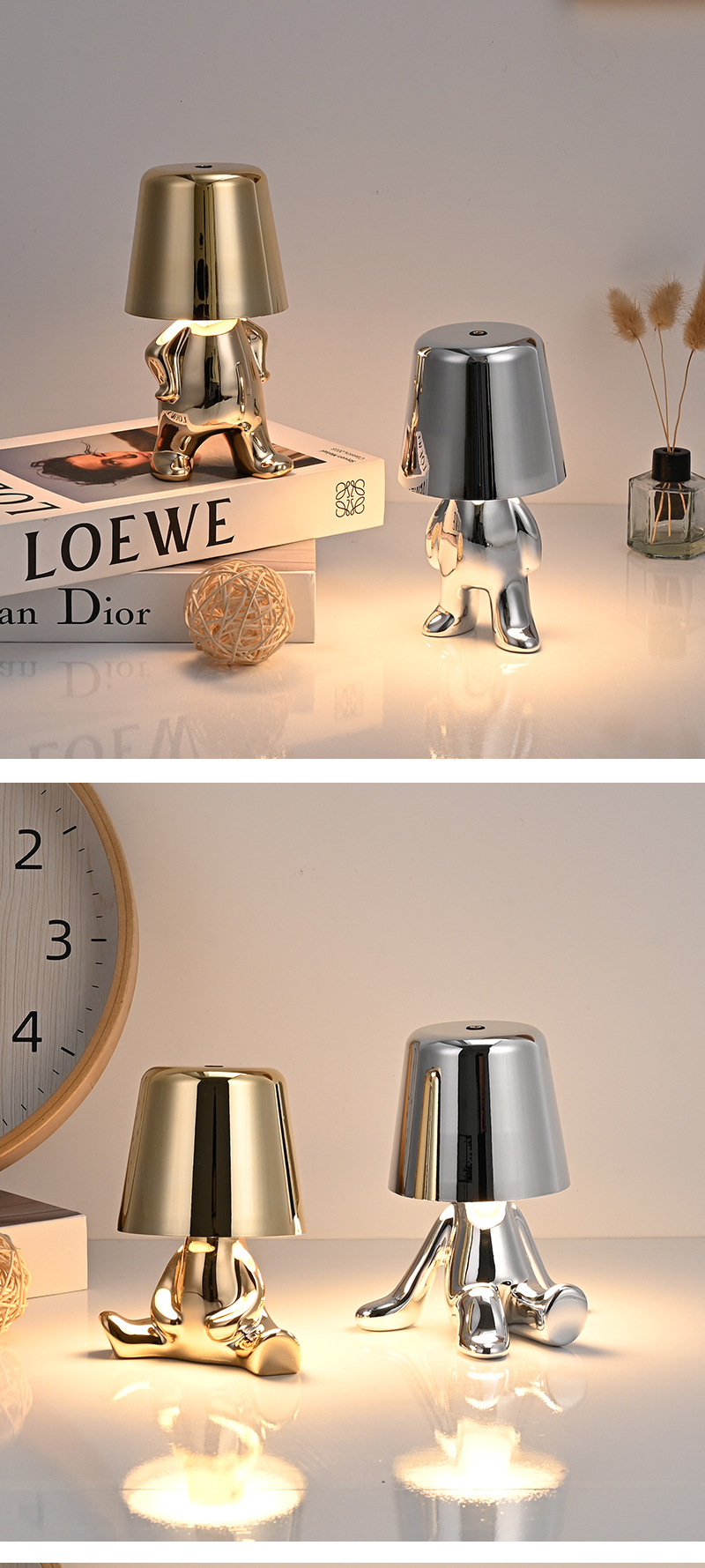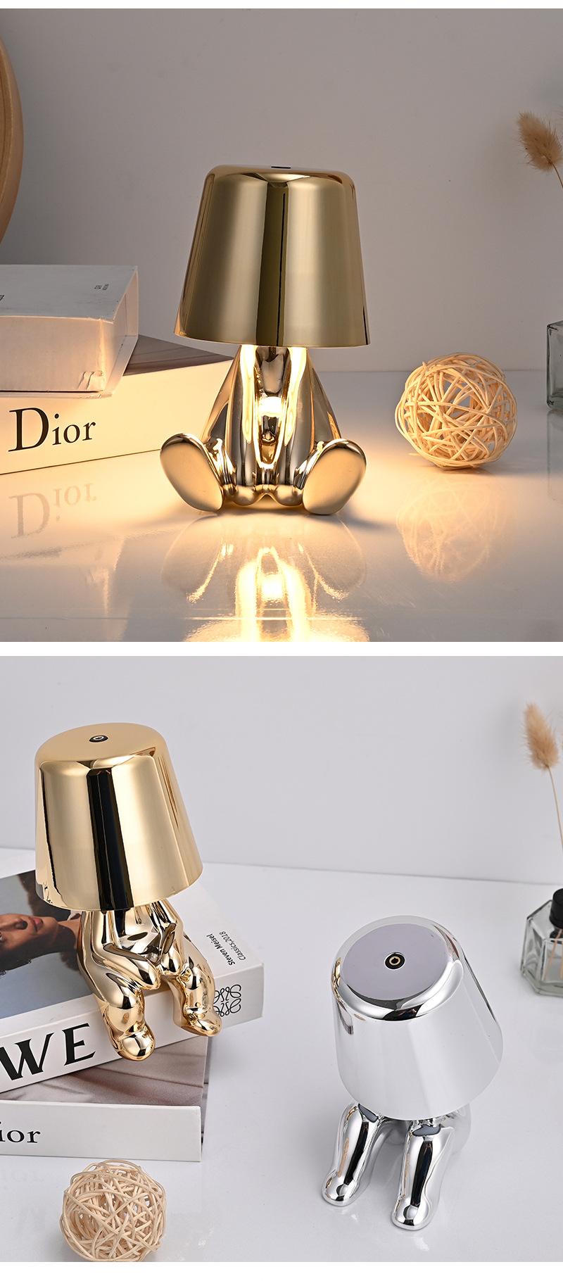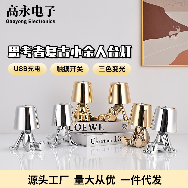 창의적인 장식품 테이블 램프 작은 골드맨 USB 충전 터치 스위치 야간등 침실 바 테이블 램프 데스크탑
