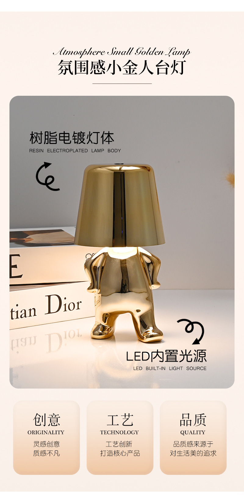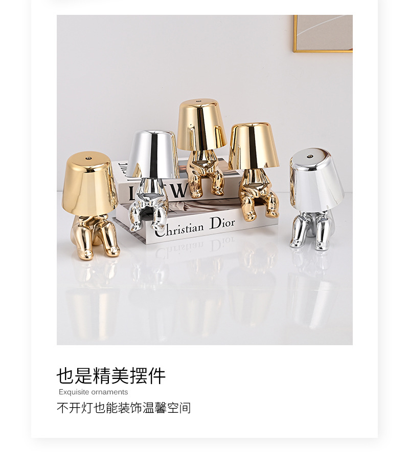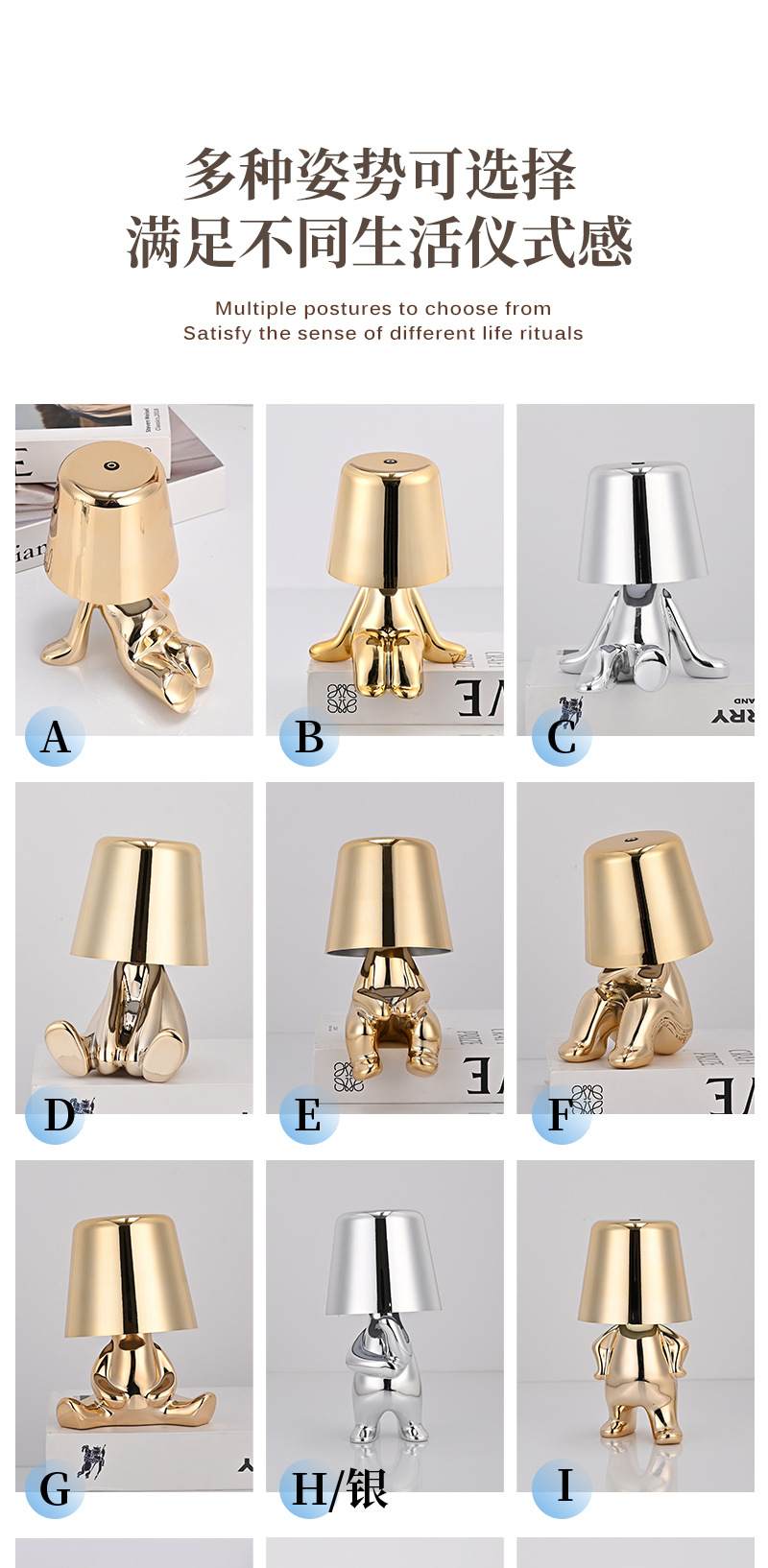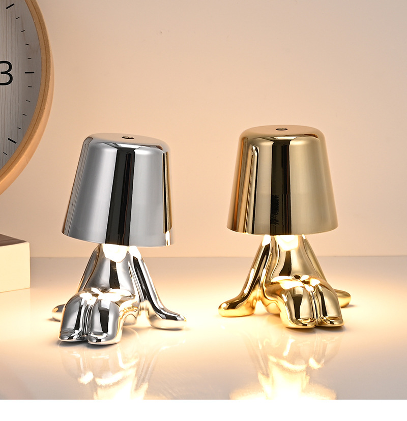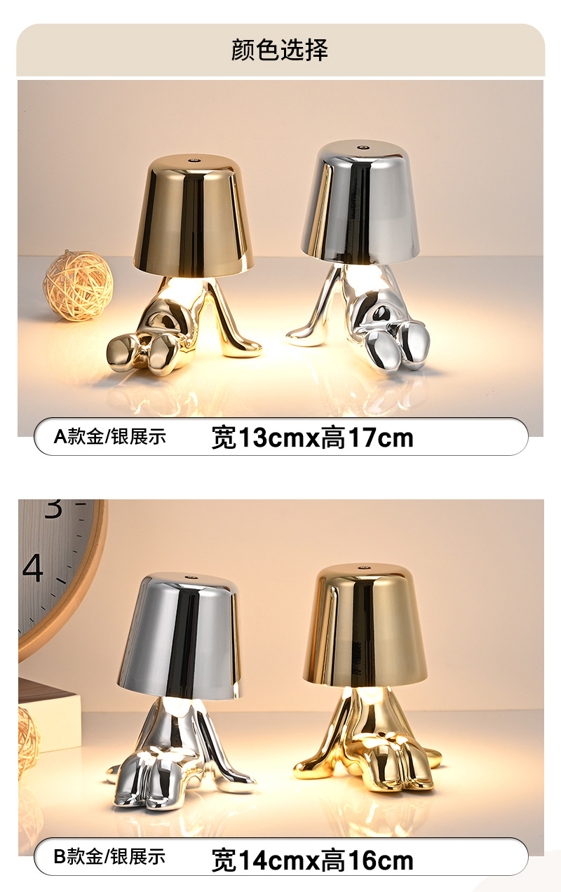창의적인 장식품 테이블 램프 작은 골드맨 USB 충전 터치 스위치 야간등 침실 바 테이블 램프 데스크탑