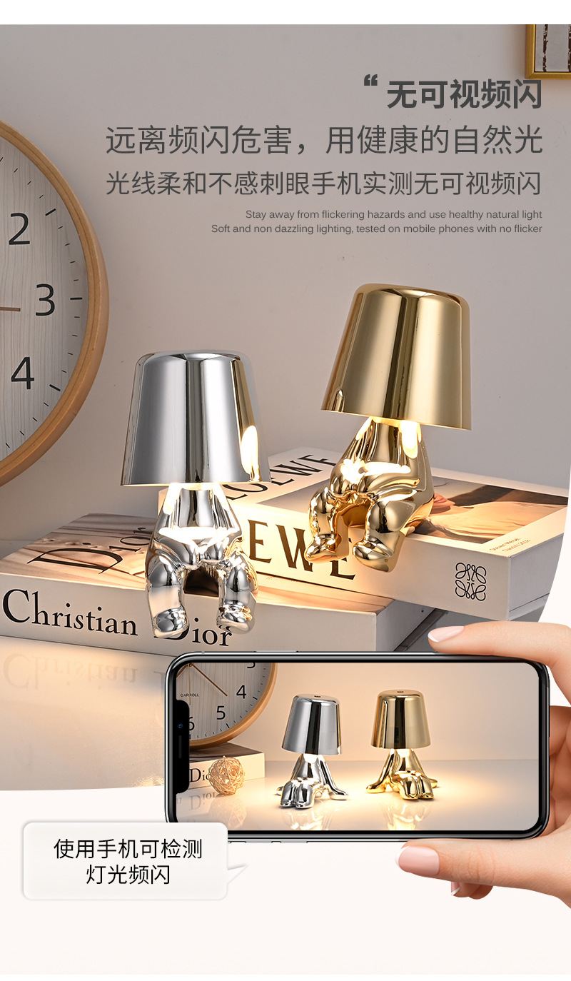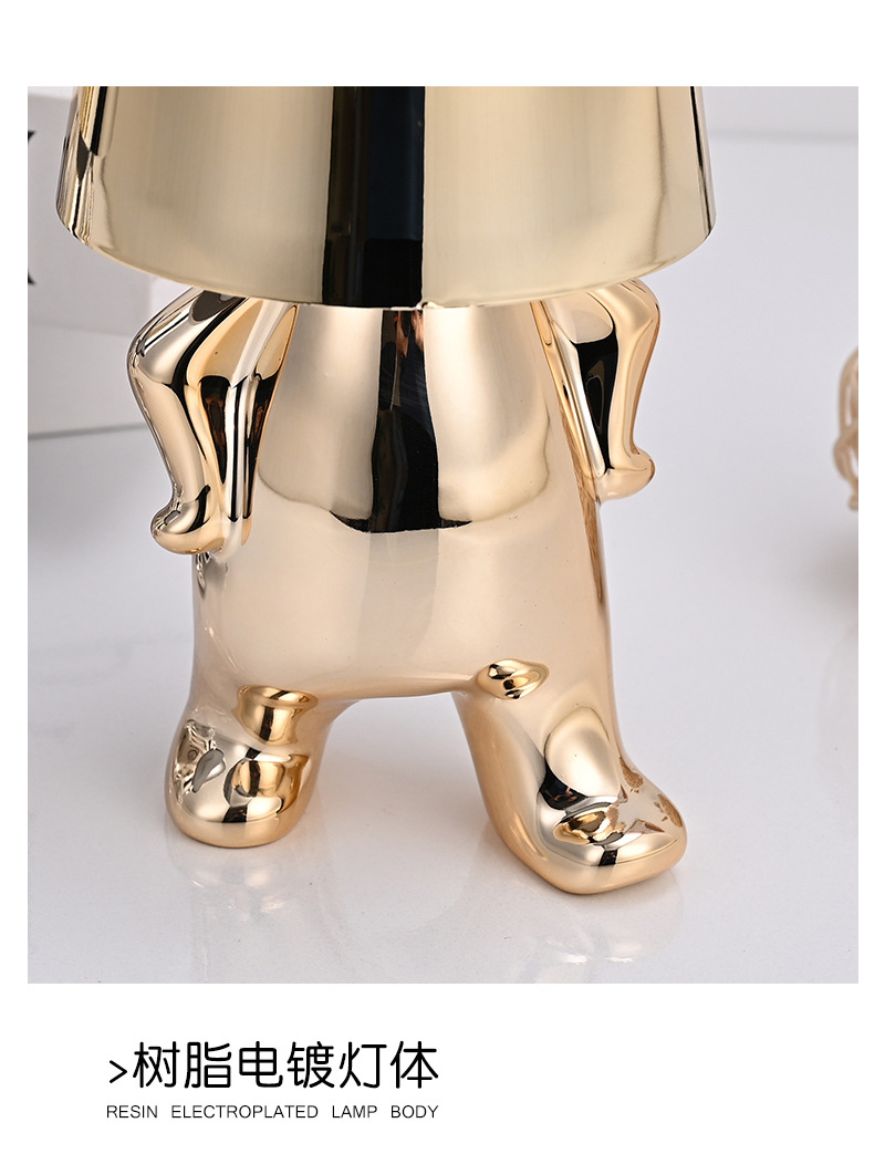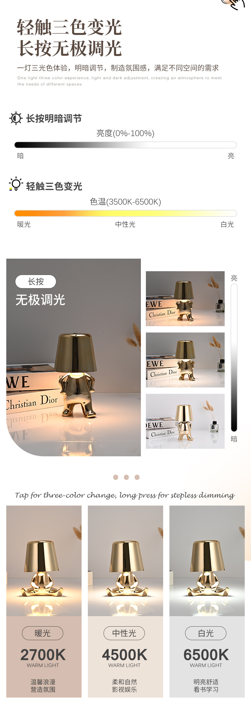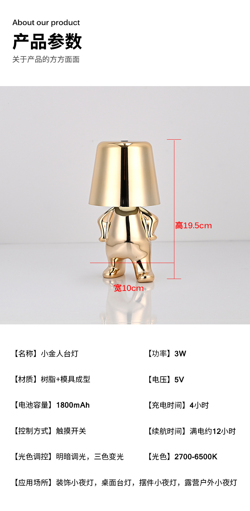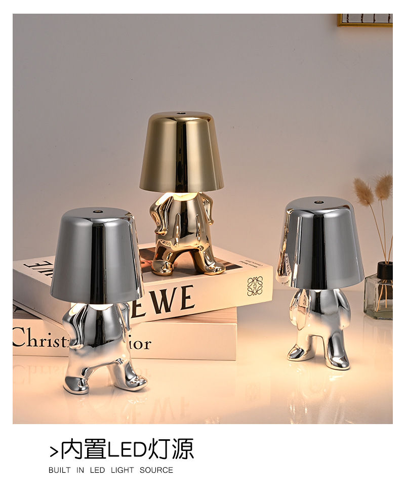 창의적인 장식품 테이블 램프 작은 골드맨 USB 충전 터치 스위치 야간등 침실 바 테이블 램프 데스크탑