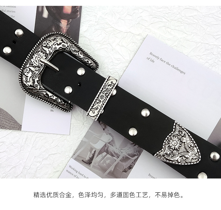 벨트 스파이스 소녀 여성 리벳 메탈 버클 쿨 밀레니엄 스타일 미국 레트로 중공업 펑크 블랙 벨트 Y2K스토어 가기