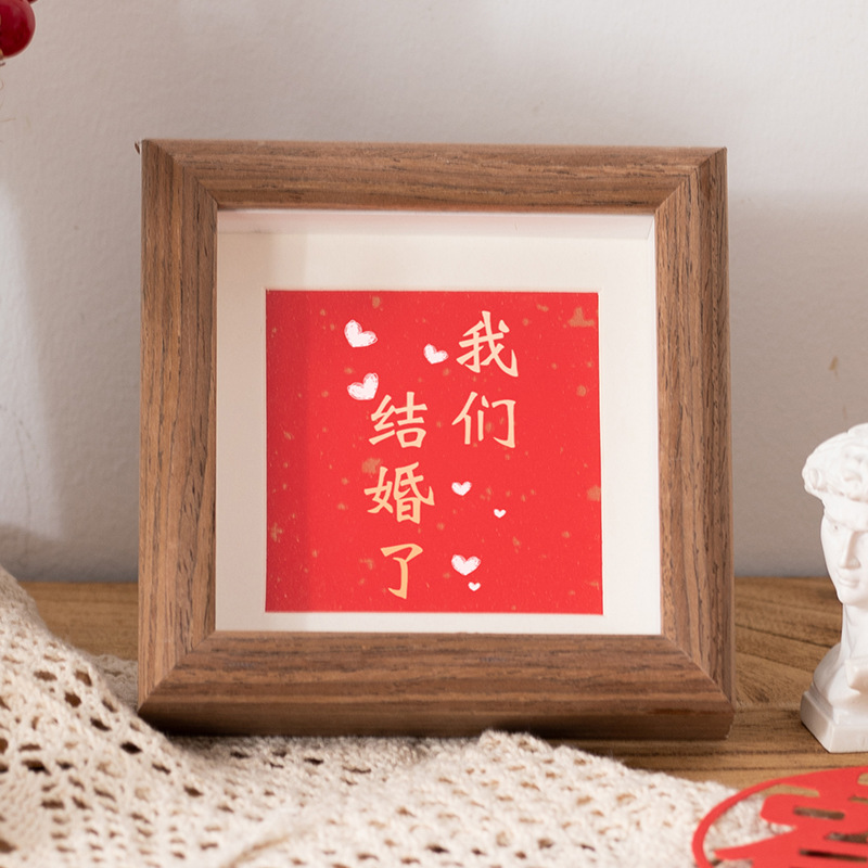 미니 작은 광장 프레임 4 할로우 해피 웨딩 축복 사진 프레임 테이블 인치 나무 DIY 프레임 유화 스틱스토어 가기