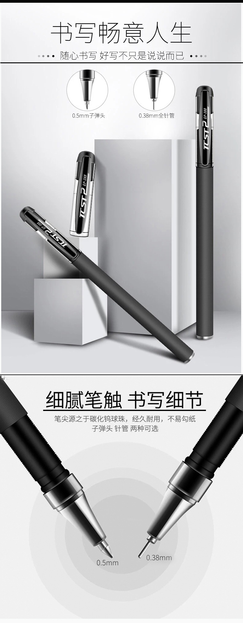 GP380 젤 펜 0.5mm 비즈니스 사인 펜 볼펜 학생 시험 학습 사무실 카본 블랙 펜