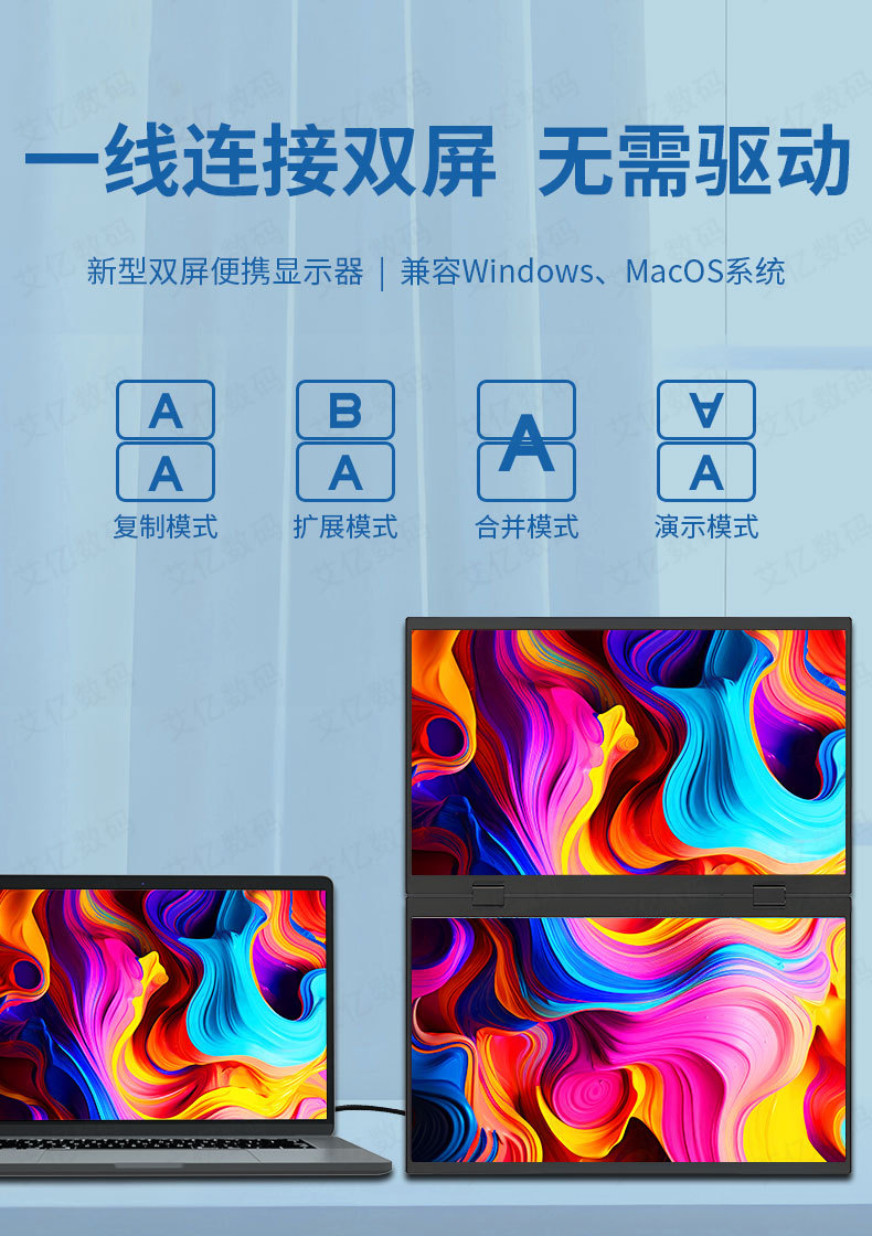 15.6 "듀얼 스크린 휴대용 디스플레이 360 플립 컴퓨터 서브 스크린 확장 주식 거래에 적합-Ai 디자인스토어 가기