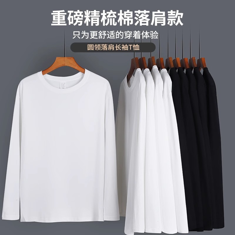220g 긴팔 티셔츠 느슨한 남성용 단색 크루 넥 티셔츠 내복 작업복 맞춤 인쇄 로고 도매스토어 가기