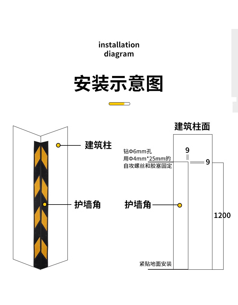 고무 모서리 보호대 지하 벽 모서리 보호 차고 고무 충돌 방지 스트립 반사 테이프 지하실 직각 경고 스트립 둥근 모서리스토어 가기