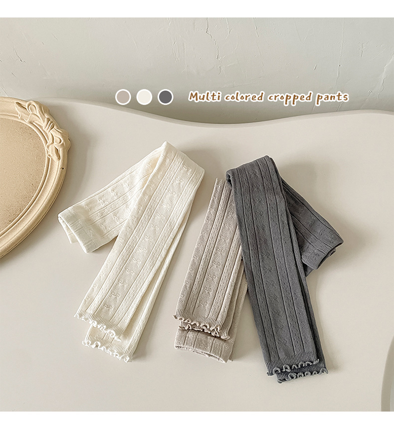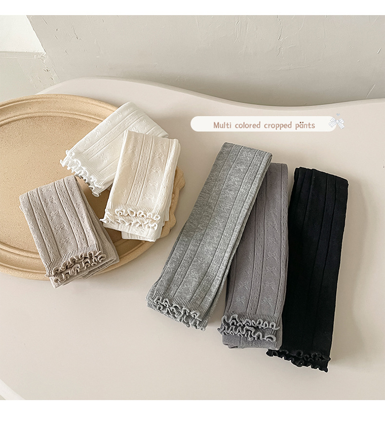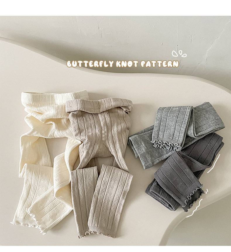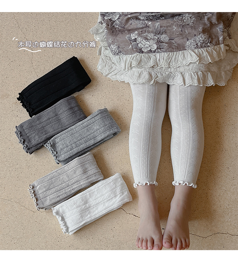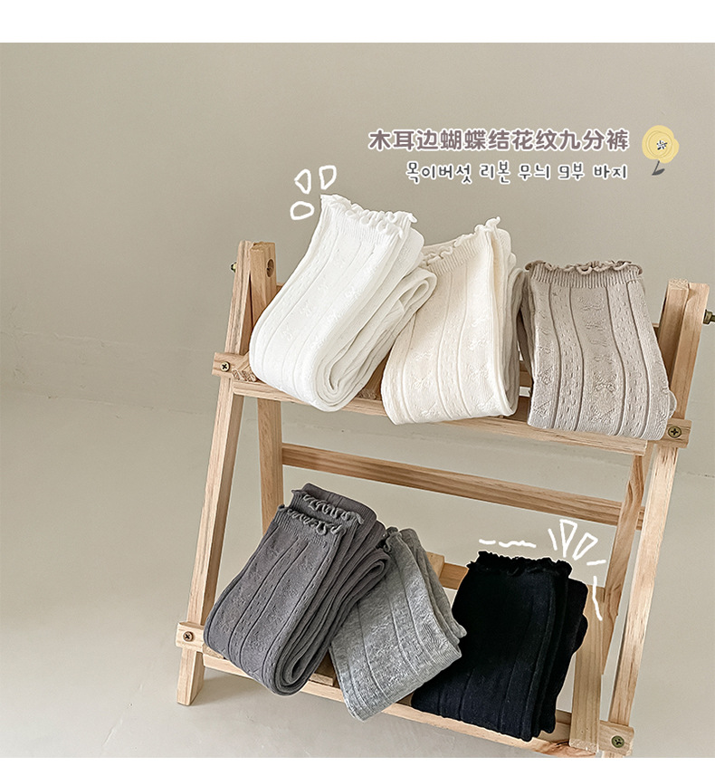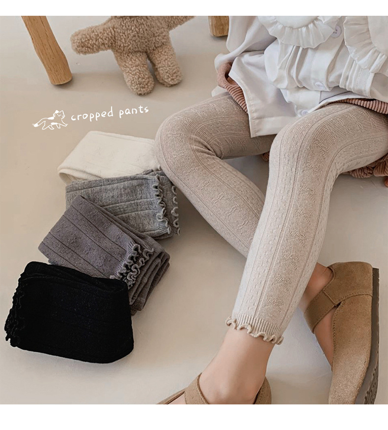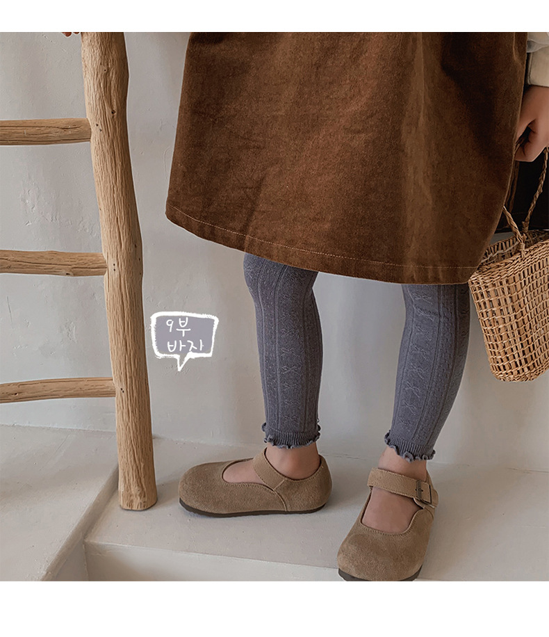 2024 가을 새로운 어린이 바지 도매 소녀 레깅스 봄과 가을면 나무 귀 양말 바지 단색 바지