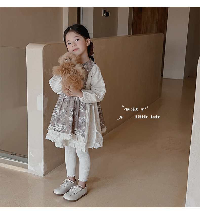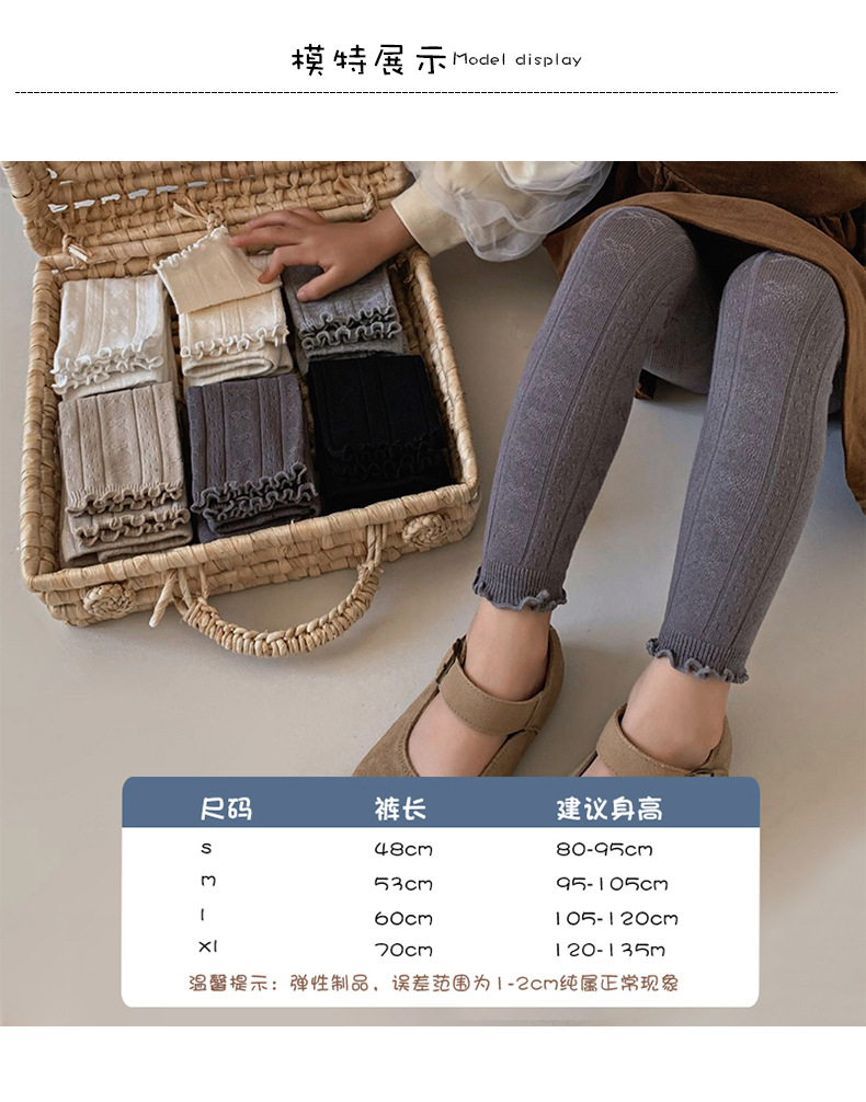 2024 가을 새로운 어린이 바지 도매 소녀 레깅스 봄과 가을면 나무 귀 양말 바지 단색 바지스토어 가기