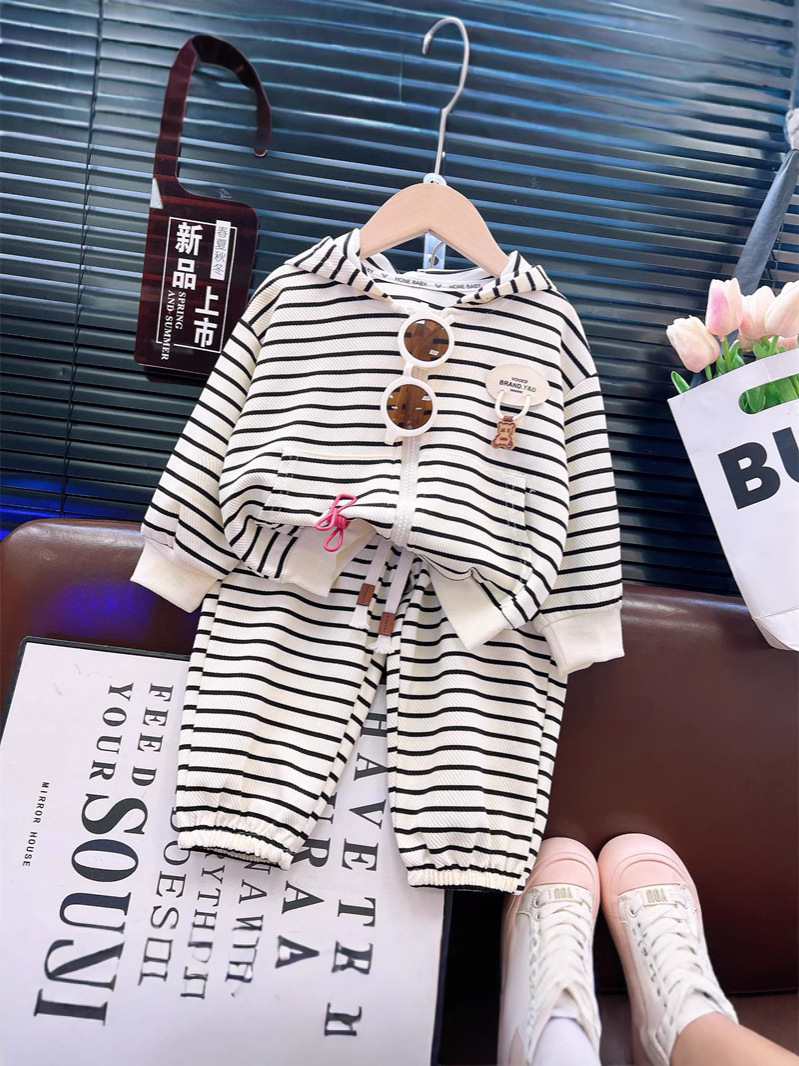 어린이 코트 세트 아동복 사이버 인기 캐주얼 후드 패션과 소녀 가을 줄무늬 패션 세련된스토어 가기