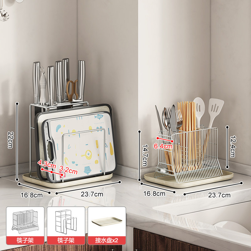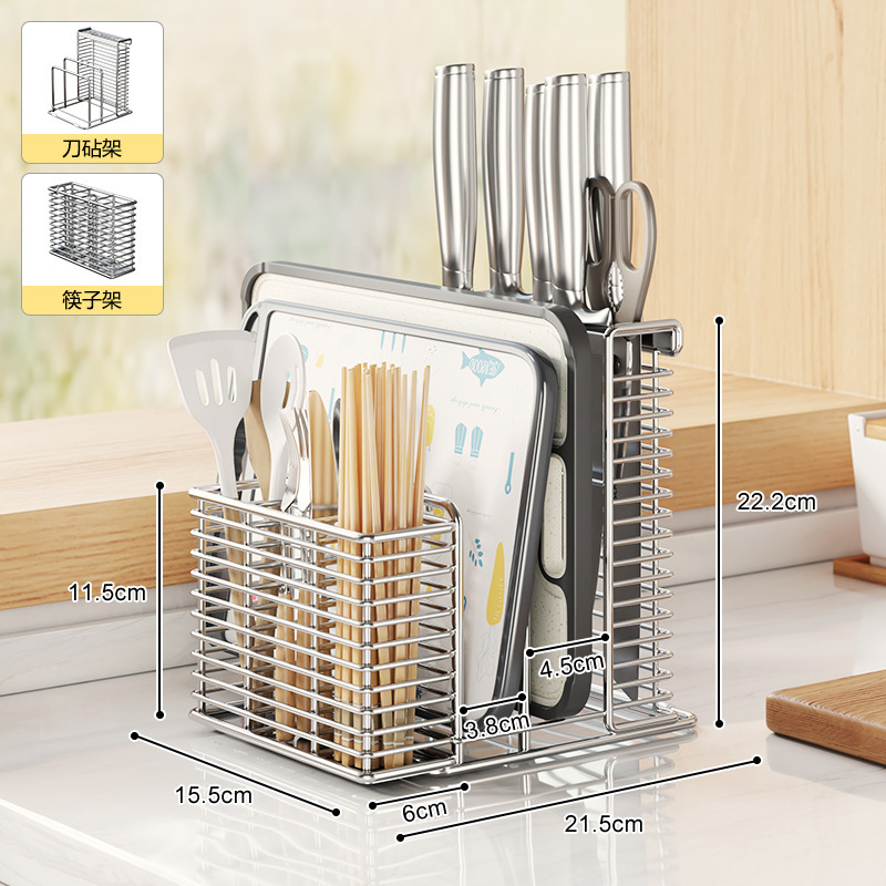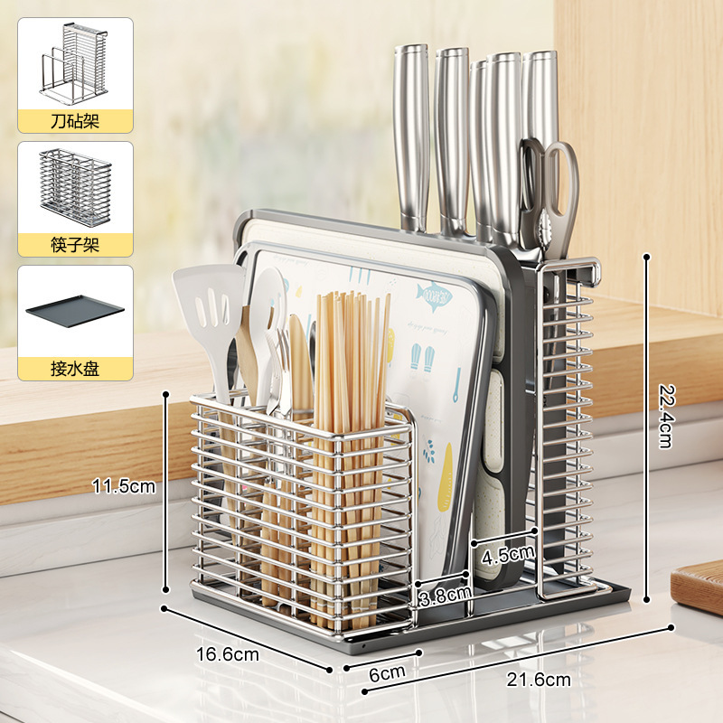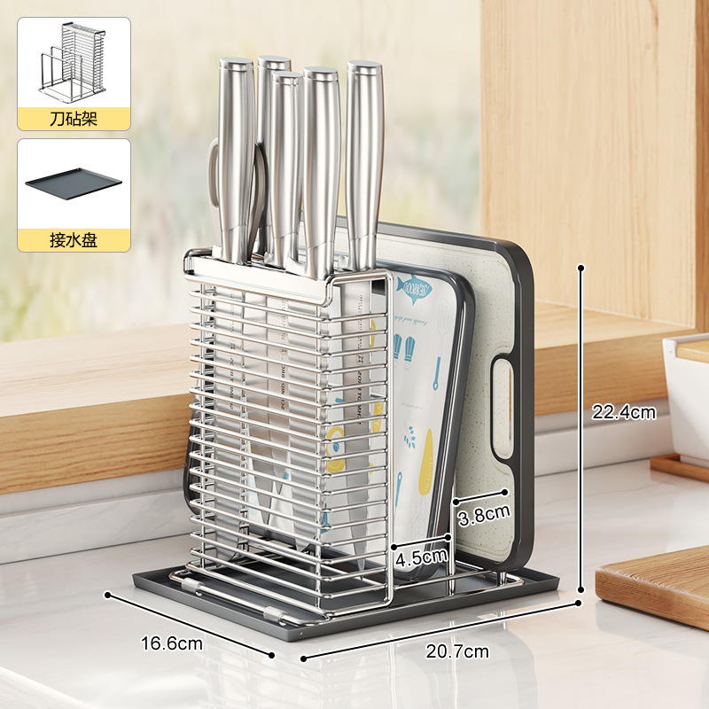 • 304 스테인리스 스틸 칼/도마 거치대 (탄소강 물받이 포함) + 수저통